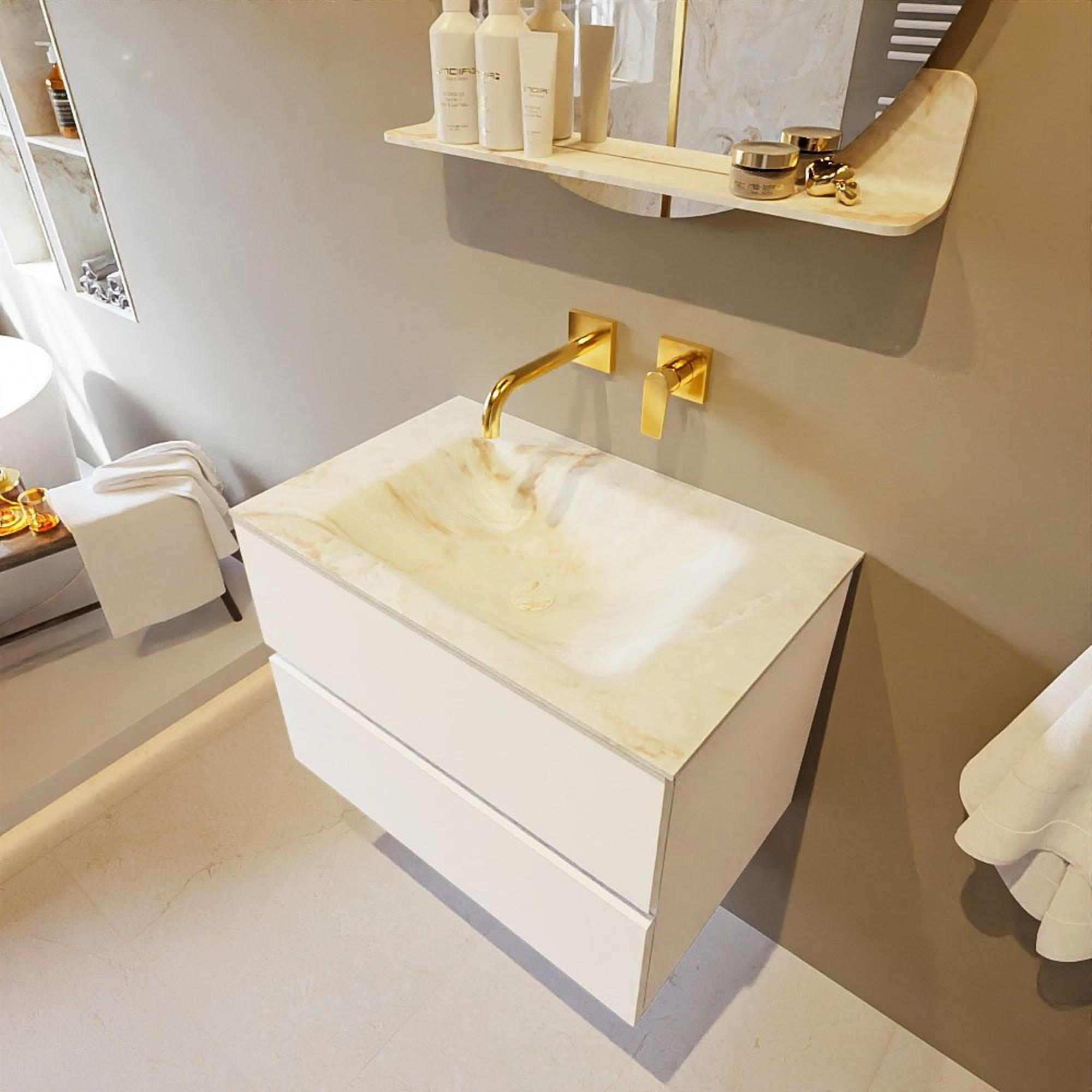 MONDIAZ VICA-DLUX Ensemble meuble de salle de bains - 70cm - meuble bas Talc - 2 tiroirs - vasque encastrée Cloud au centre - sans trous de robinet - version haute 60cm - Frappe