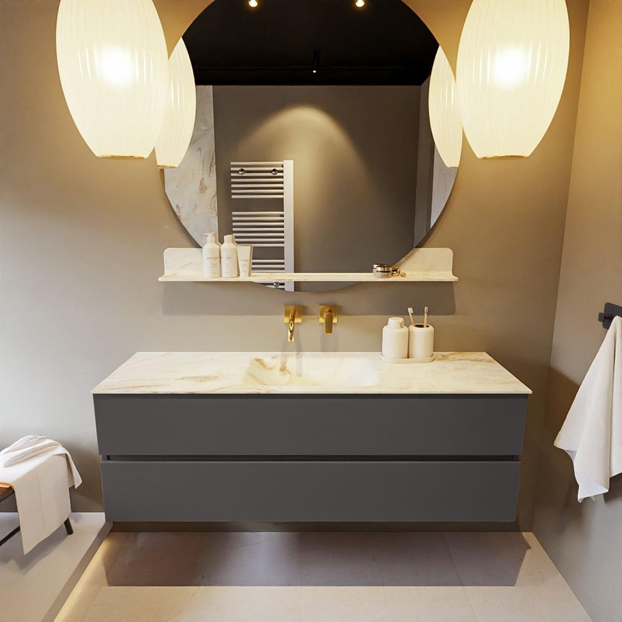 MONDIAZ VICA-DLUX Ensemble meuble de salle de bains - 150cm - meuble sous-vasque dark grey - 2 tiroirs - lavabo encastré cloud au milieu - sans trous de robinet - version haute 60cm - frape