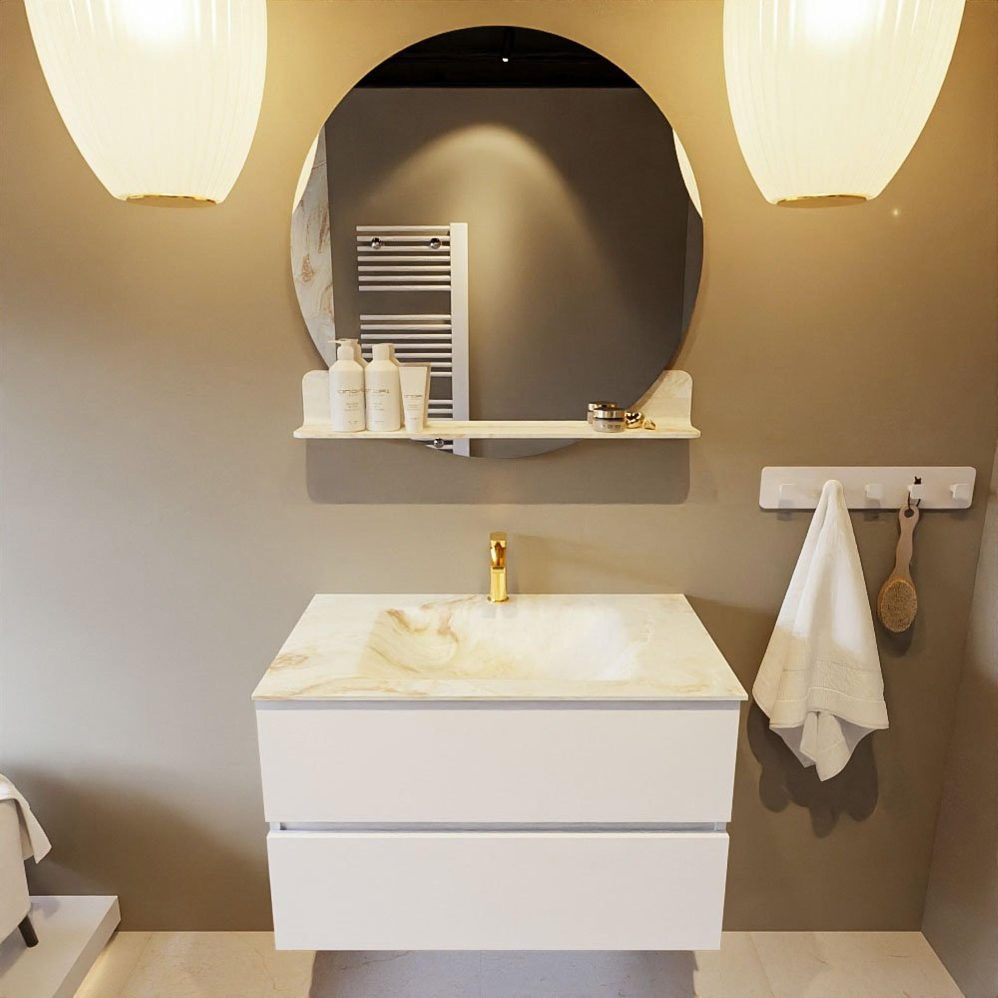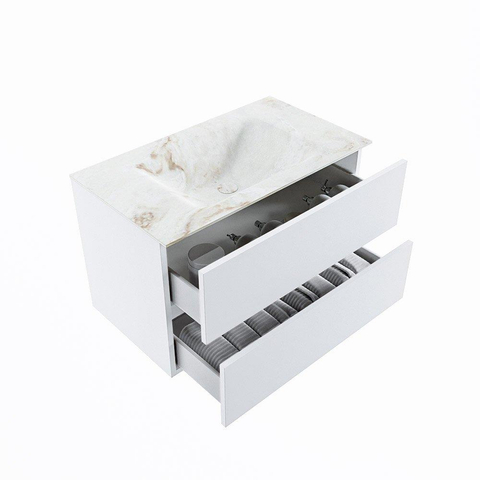 MONDIAZ VICA-DLUX Ensemble meuble de salle de bains - 80cm - meuble bas talc - 2 tiroirs - lavabo encastré cloud centré - 1 trou de robinet - version haute 60cm - frape