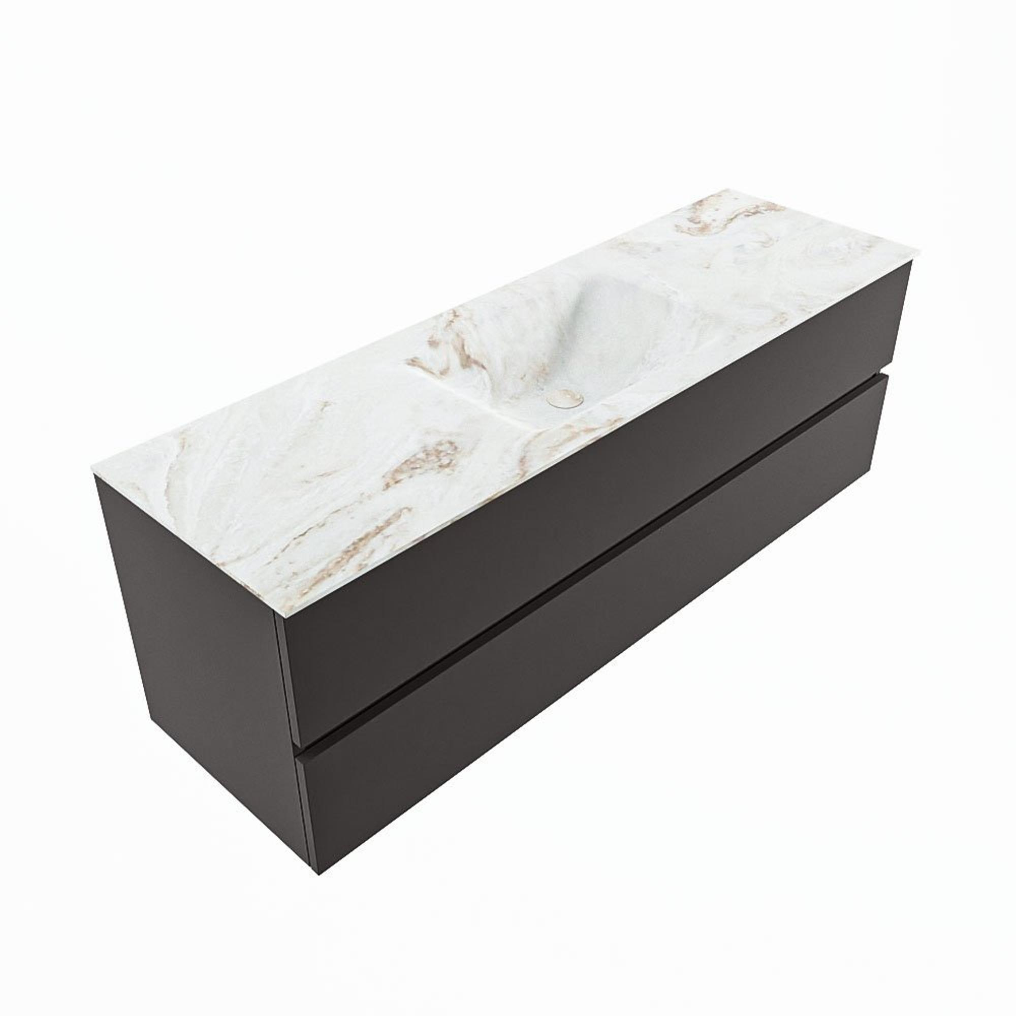 MONDIAZ VICA-DLUX Ensemble meuble de salle de bains - 150cm - meuble bas dark grey - 2 tiroirs - vasque encastrée cloud au centre - 1 trou de robinet - version haute 60cm - frape