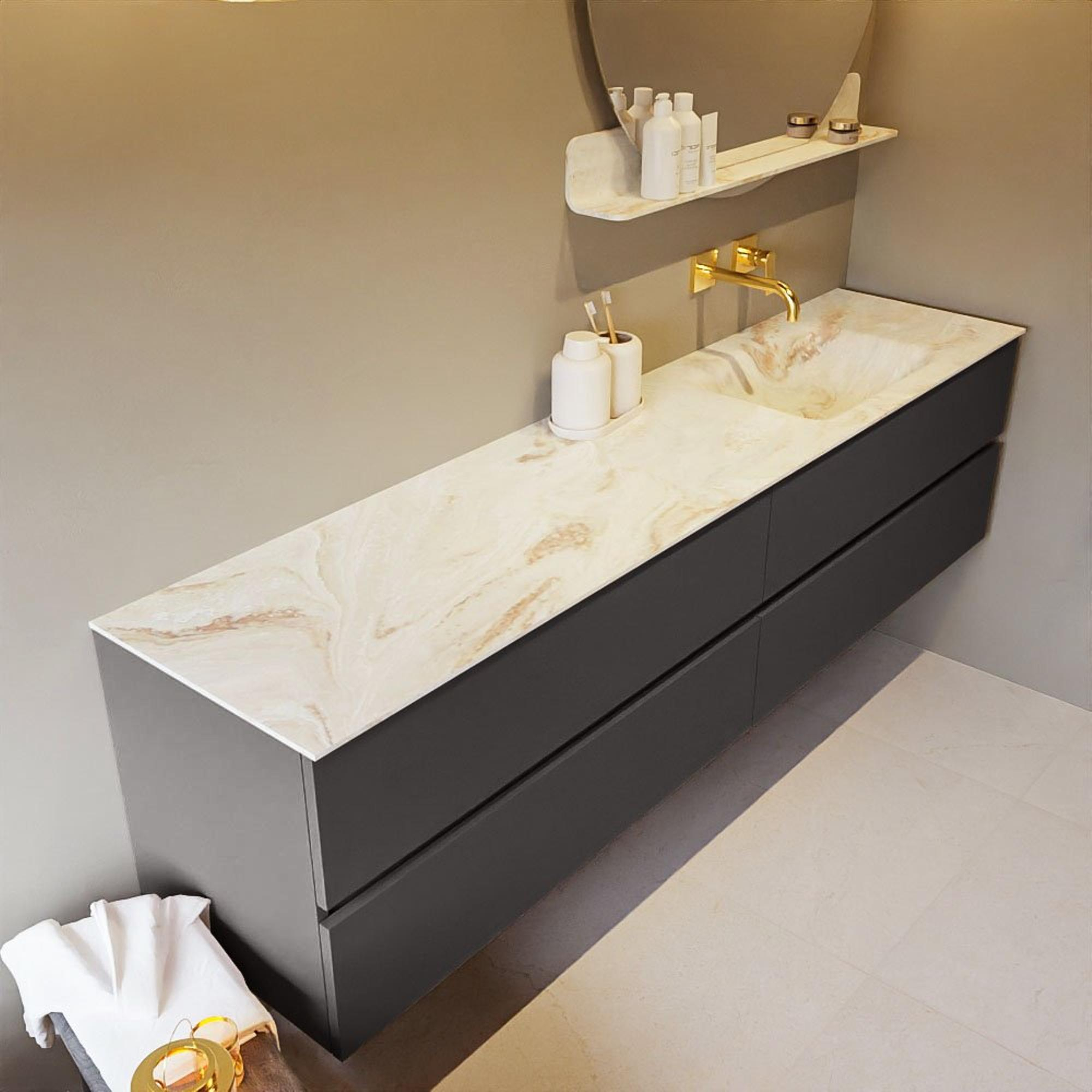 MONDIAZ VICA-DLUX Ensemble meuble de salle de bains - 200cm - sous-meuble dark grey - 4 tiroirs - lavabo encastré cloud à droite - sans trous de robinet - version haute 60cm - frape