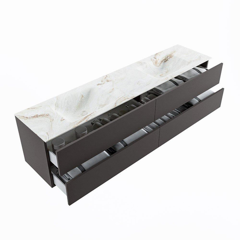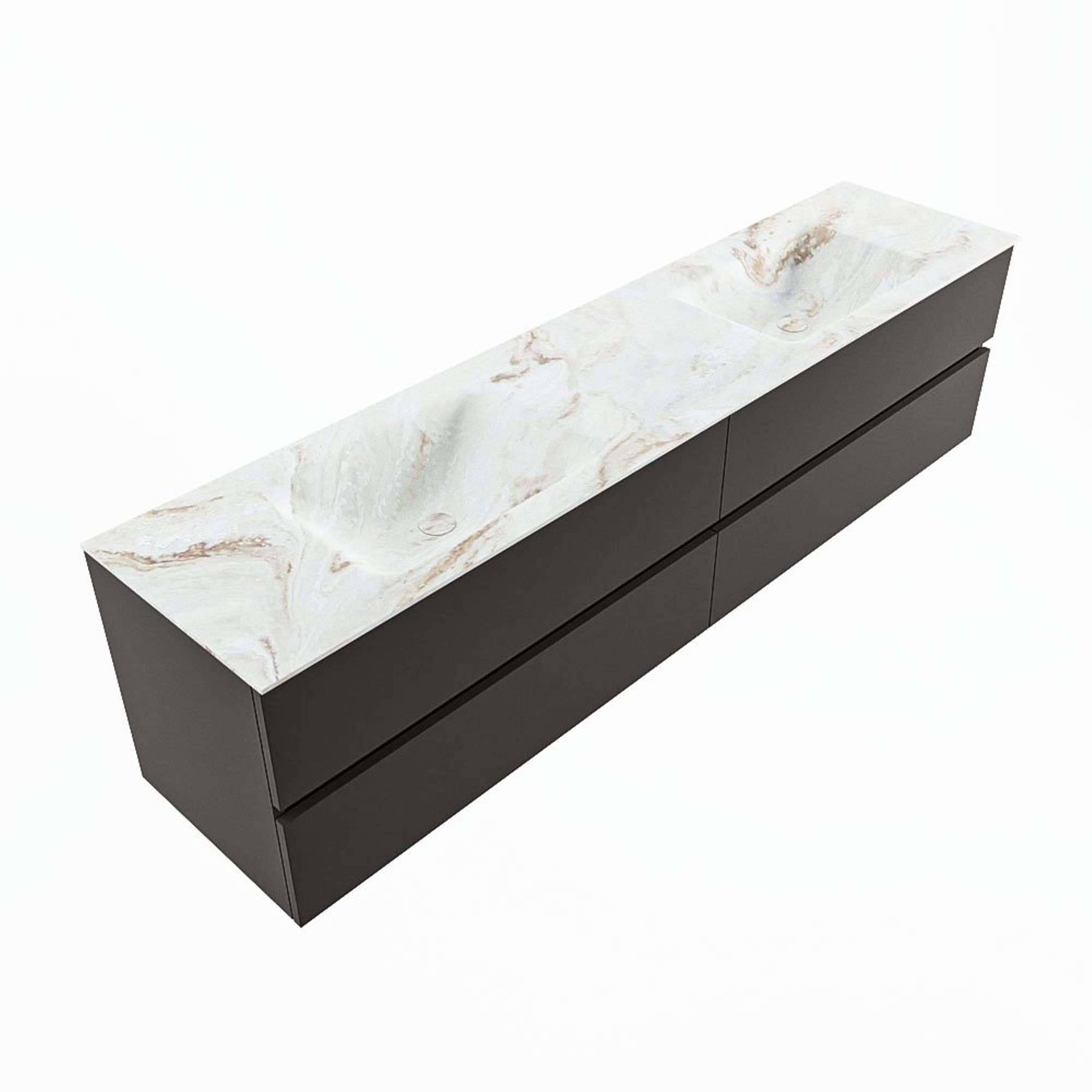 MONDIAZ VICA-DLUX Ensemble meuble de salle de bains - 200cm - meuble sous-vasque dark grey - 4 tiroirs - vasque encastrée cloud double - 2 trous de robinetterie - version haute 60cm - frape