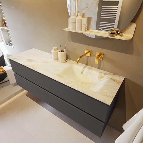 MONDIAZ VICA-DLUX Ensemble meuble de salle de bains - 150cm - meuble sous-vasque dark grey - 2 tiroirs - lavabo encastré cloud à droite - sans trous de robinetterie - version haute 60cm - frape