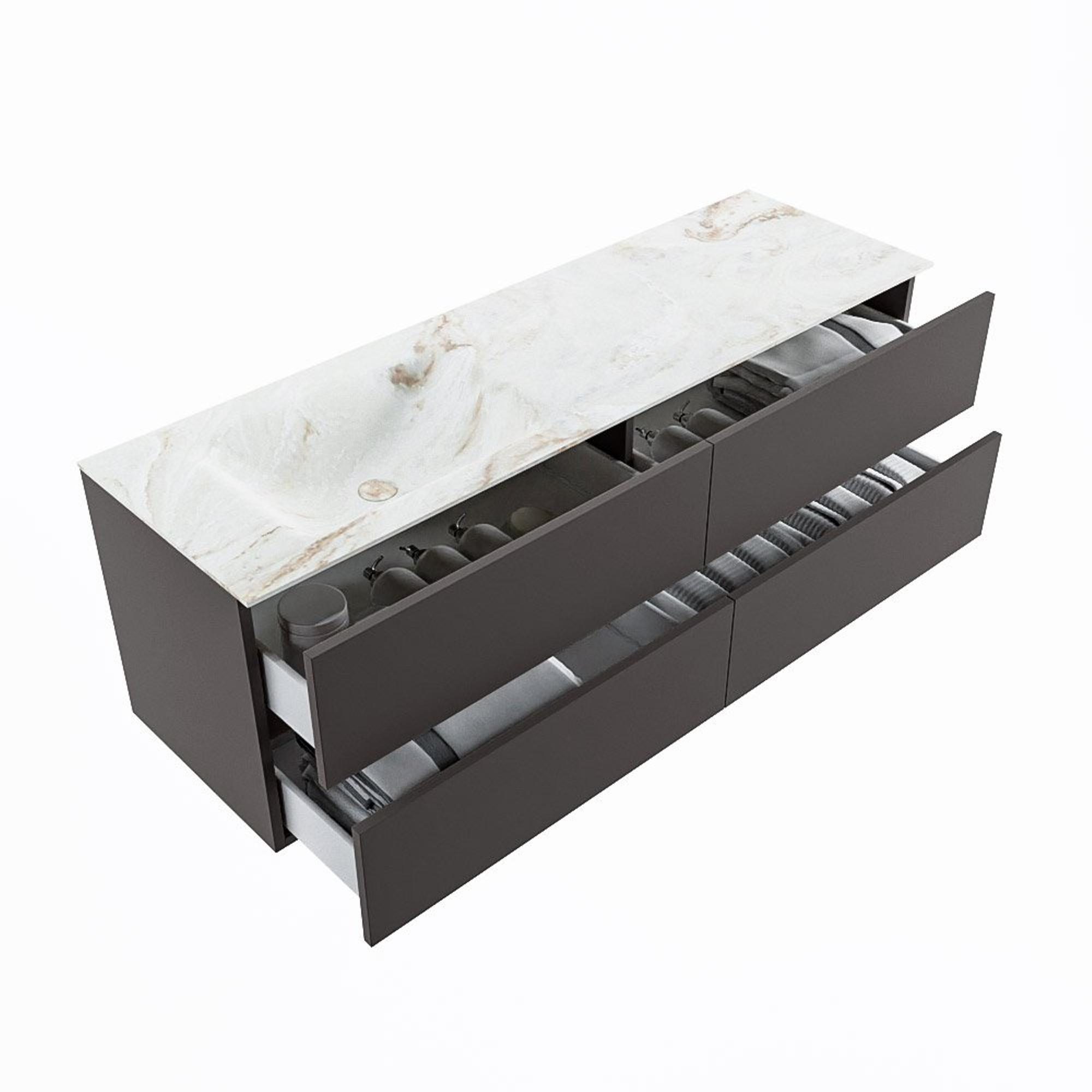 MONDIAZ VICA-DLUX Ensemble meuble de salle de bains - 150cm - meuble bas Dark Grey - 4 tiroirs - lavabo encastré cloud gauche - 1 trou de robinet - version haute 60cm - frape