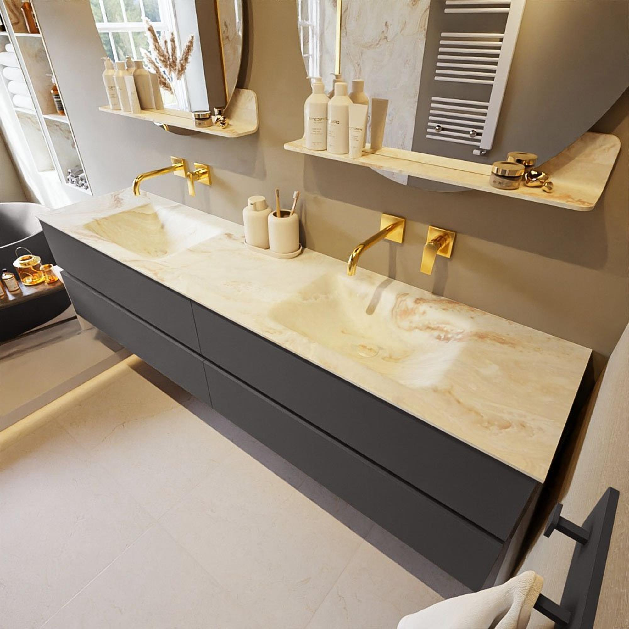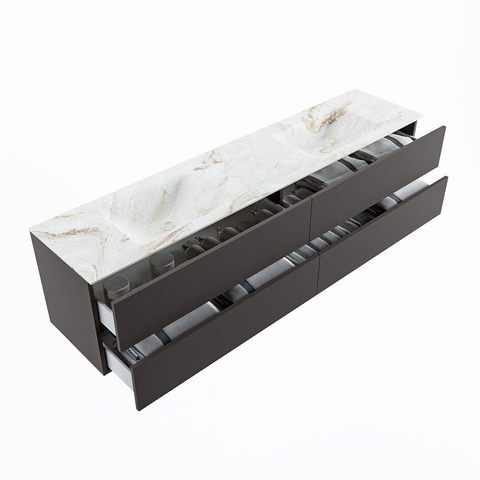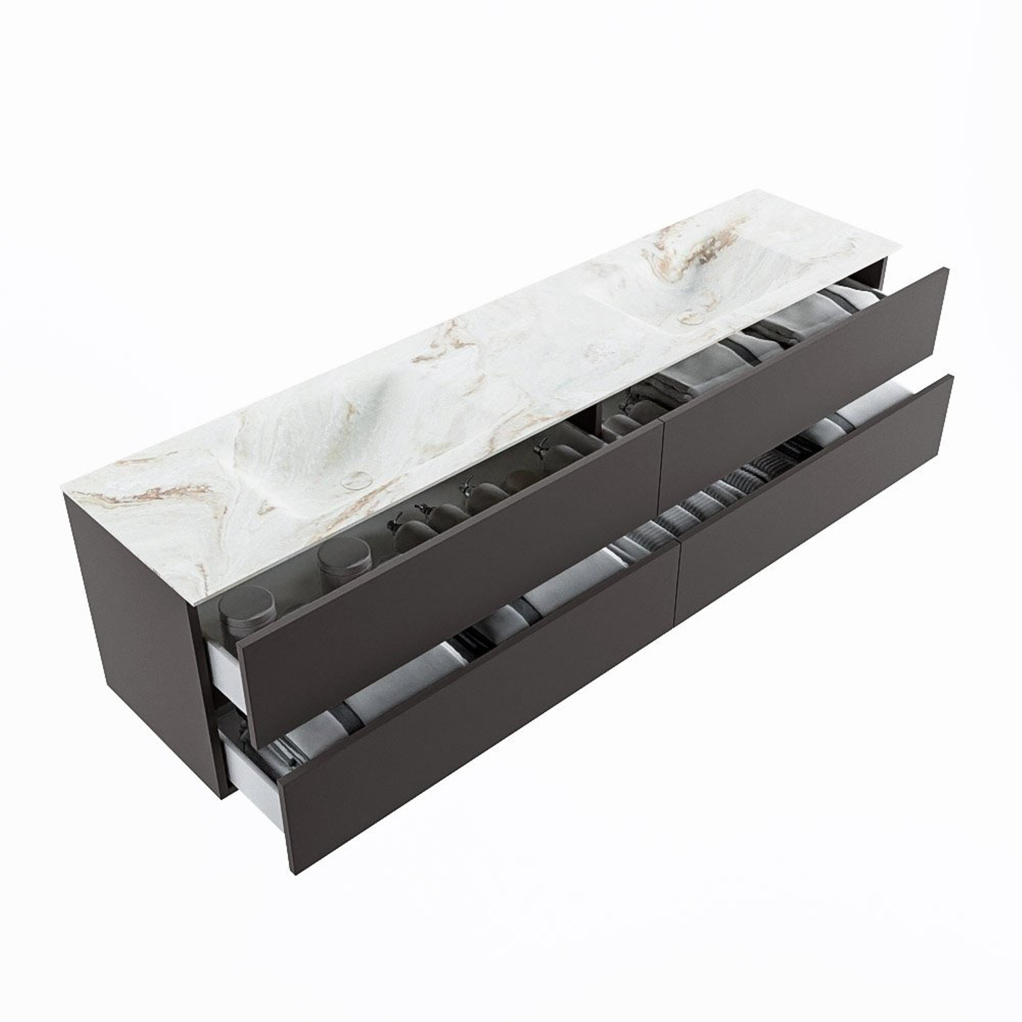 MONDIAZ VICA-DLUX Ensemble meuble de salle de bains - 200cm - meuble sous-vasque dark grey - 4 tiroirs - lavabo encastré cloud double - sans trous de robinet - version haute 60cm - frape