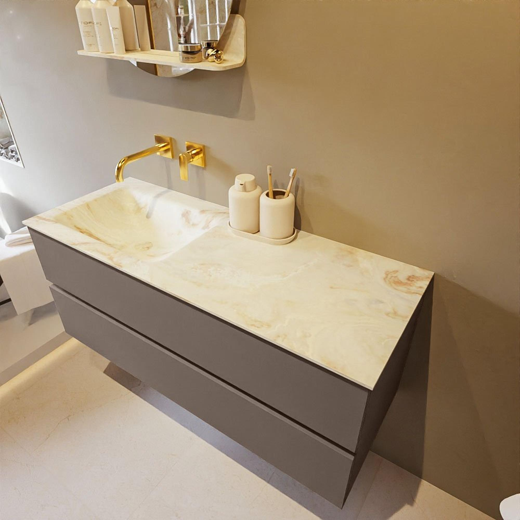 MONDIAZ VICA-DLUX Ensemble meuble de salle de bains - 120cm - meuble bas smoke - 2 tiroirs - lavabo encastré cloud gauche - sans trous de robinet - version hauteur 60cm - frape
