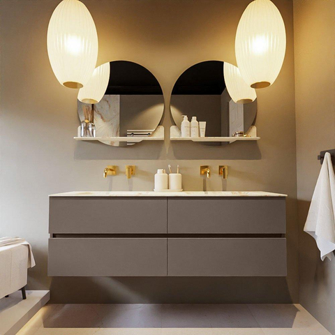 MONDIAZ VICA-DLUX Ensemble meuble de salle de bains - 150cm - meuble bas smoke - 4 tiroirs - lavabo encastré cloud double - sans trous de robinetterie - version haute 60cm - frape