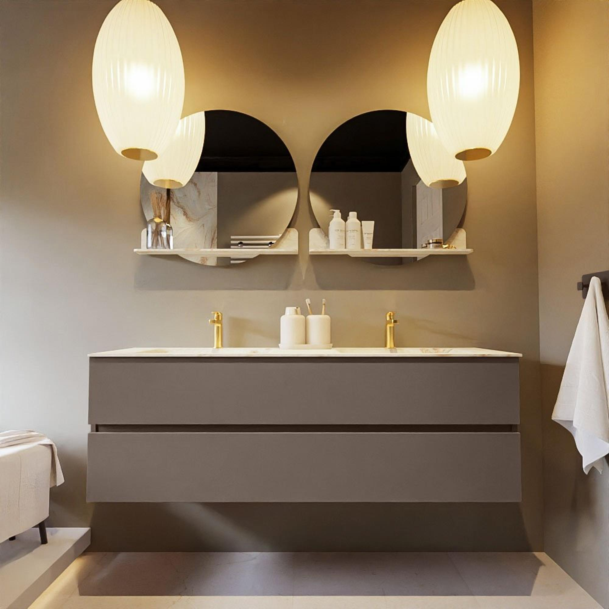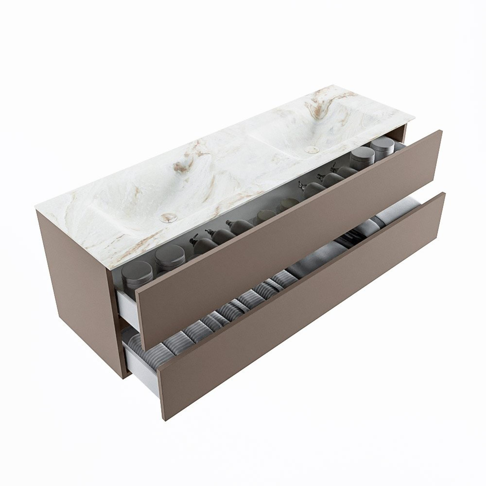 MONDIAZ VICA-DLUX Ensemble meuble de salle de bains - 150cm - meuble bas smoke - 2 tiroirs - lavabo encastré cloud double - 2 trous de robinet - version haute 60cm - frape