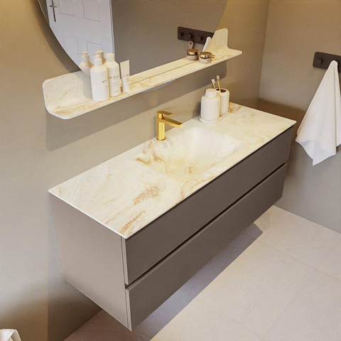 MONDIAZ VICA-DLUX Ensemble meuble de salle de bains - 130cm - meuble bas smoke - 2 tiroirs - lavabo encastré cloud au milieu - 1 trou de robinet - version haute 60cm - frape