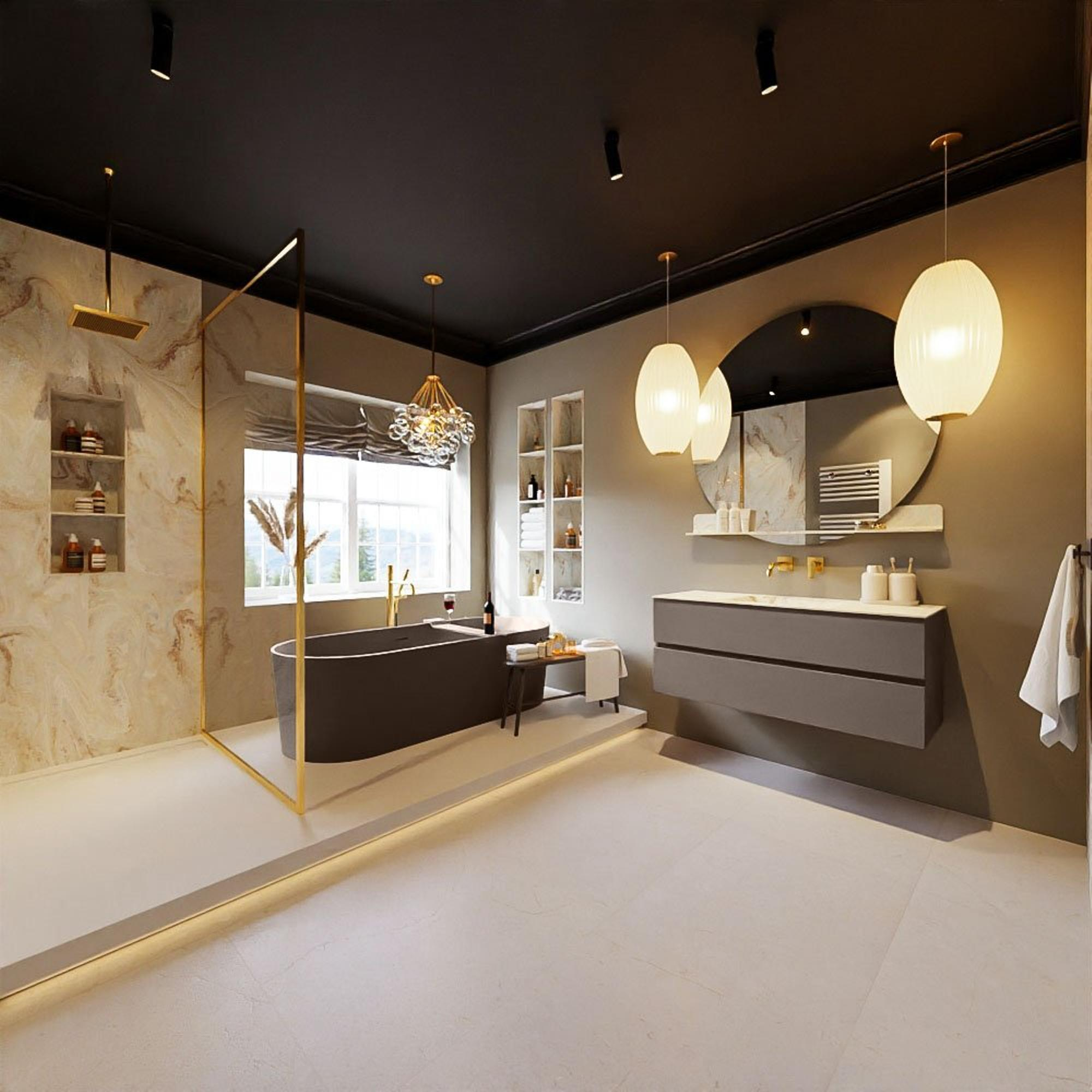 - Le meuble ne doit pas se trouver directement à côté ou en face d’une douche avec rideau de douche et/ou sans paroi de douche.