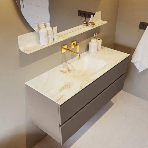 MONDIAZ VICA-DLUX Ensemble meuble de salle de bains - 120cm - meuble bas smoke - 2 tiroirs - lavabo encastré cloud central - sans trous de robinet - version haute 60cm - frape