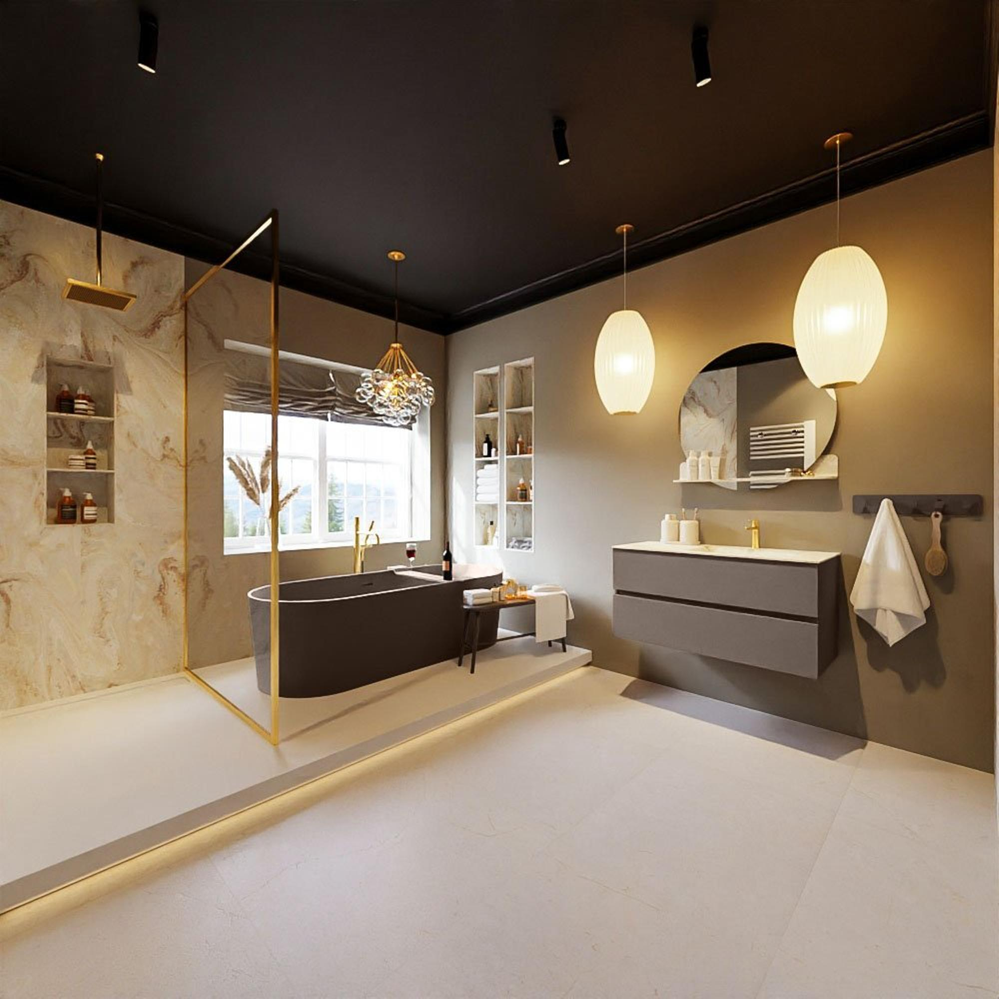 - Le meuble ne doit pas être placé directement à côté ou en face d’une douche avec rideau de douche et/ou sans paroi de douche.