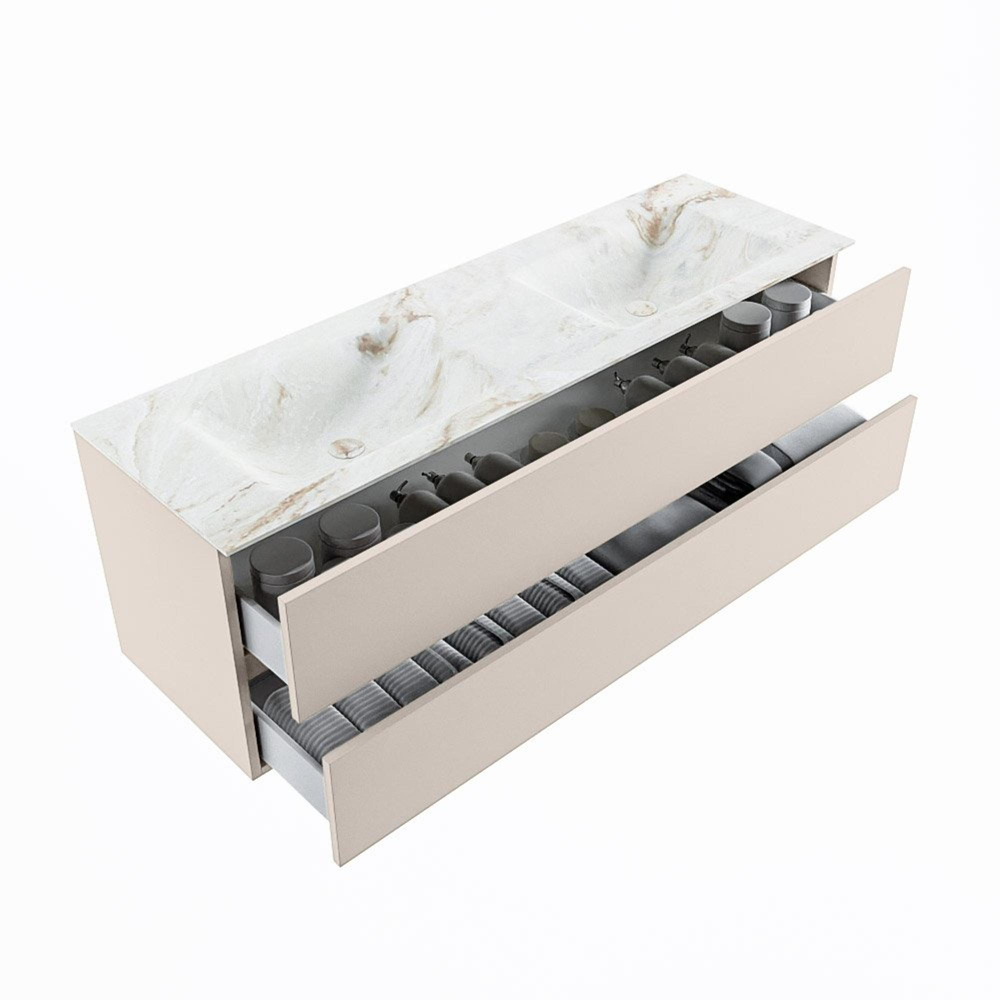 MONDIAZ VICA-DLUX Ensemble meuble de salle de bains - 150cm - meuble bas linen - 2 tiroirs - lavabo encastré cloud double - sans trous de robinet - version haute 60cm - frape