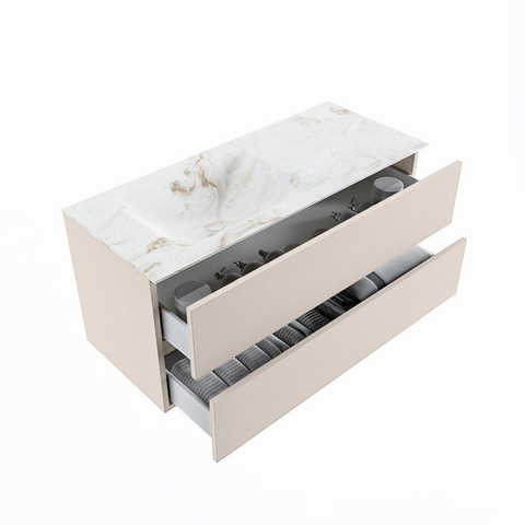 MONDIAZ VICA-DLUX Ensemble meuble de salle de bains - 110cm - meuble bas linen - 2 tiroirs - vasque encastrée cloud à gauche - sans trous de robinetterie - version hauteur 60cm - frape