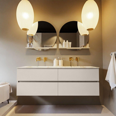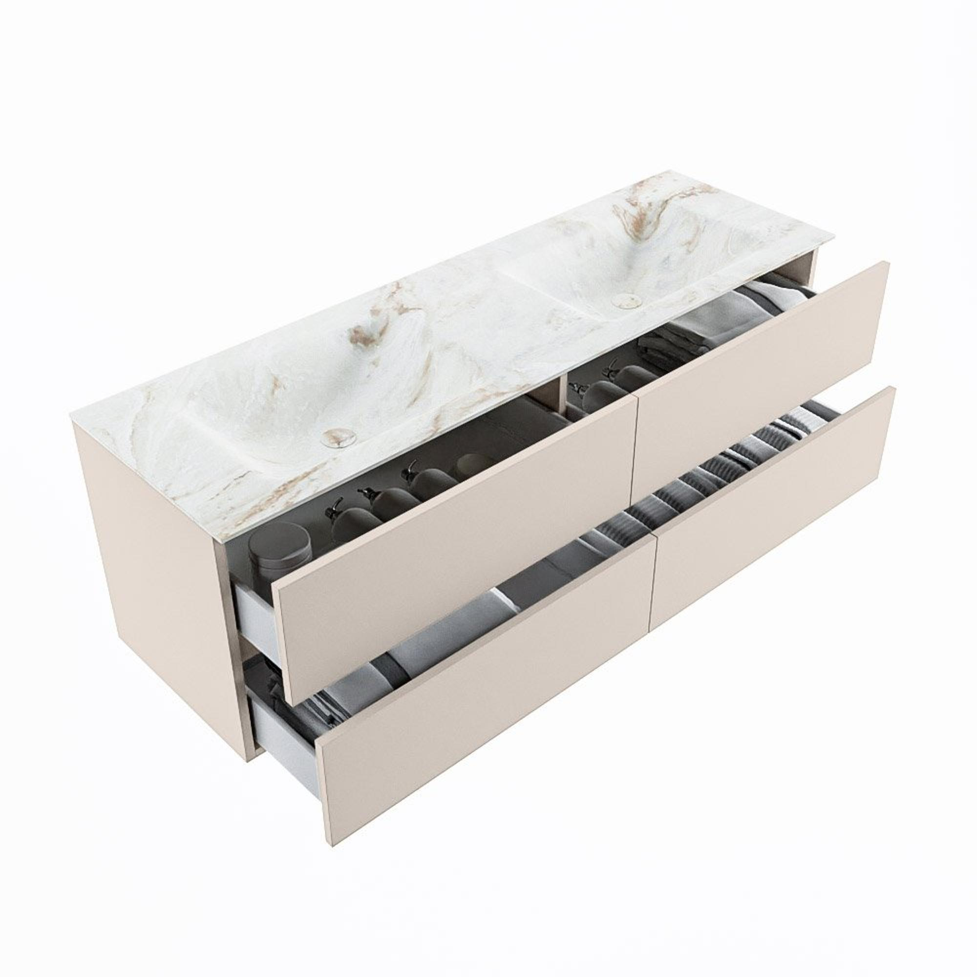 MONDIAZ VICA-DLUX Ensemble meuble de salle de bains - 150cm - meuble bas linen - 4 tiroirs - lavabo encastré cloud double - sans trous de robinet - version haute 60cm - frape