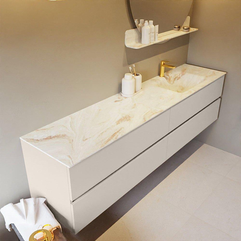 MONDIAZ VICA-DLUX Ensemble meuble de salle de bains - 200cm - meuble bas linen - 4 tiroirs - lavabo encastré cloud à droite - 1 trou de robinet - version hauteur 60cm - frape