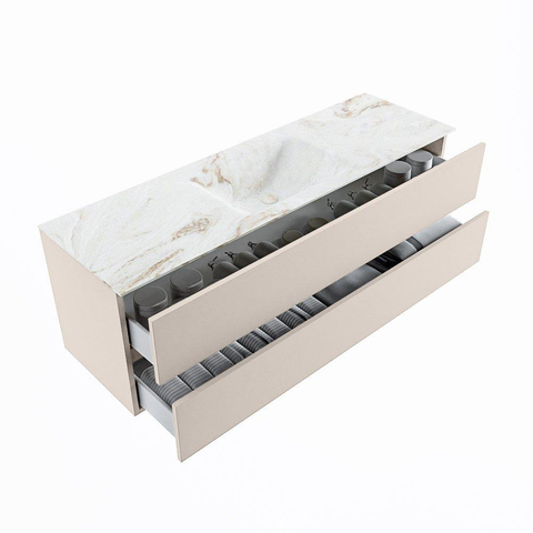 MONDIAZ VICA-DLUX Ensemble meuble de salle de bains - 150cm - meuble bas linen - 2 tiroirs - lavabo encastré cloud centré - 1 trou de robinet - version haute 60cm - frape