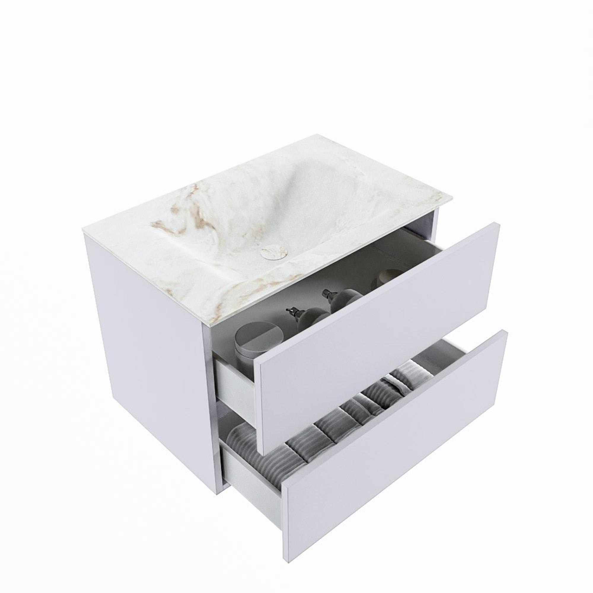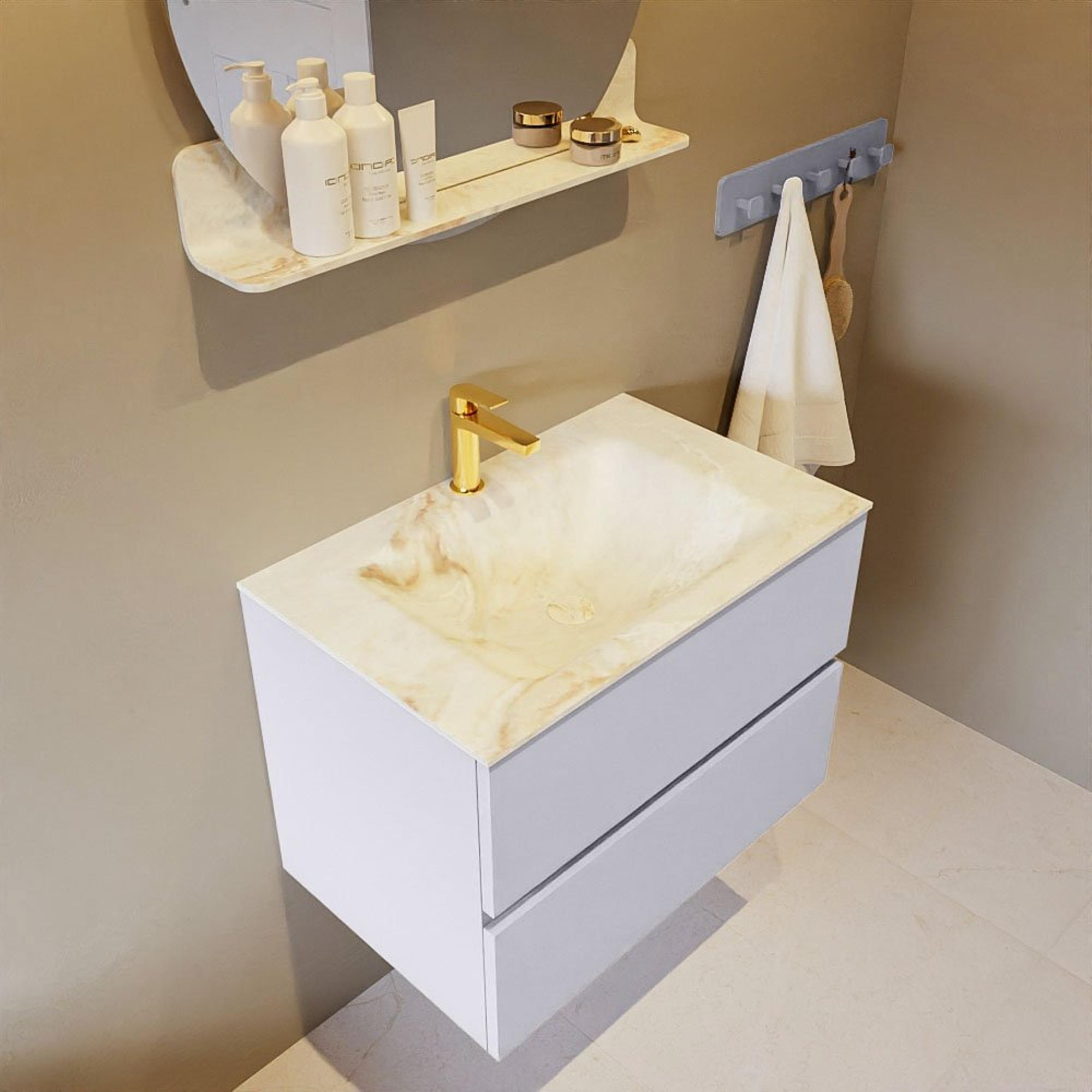 MONDIAZ VICA-DLUX Ensemble meuble de salle de bains - 70cm - meuble sous-vasque cale - 2 tiroirs - lavabo encastré cloud central - 1 trou de robinet - version haute 60cm - frape