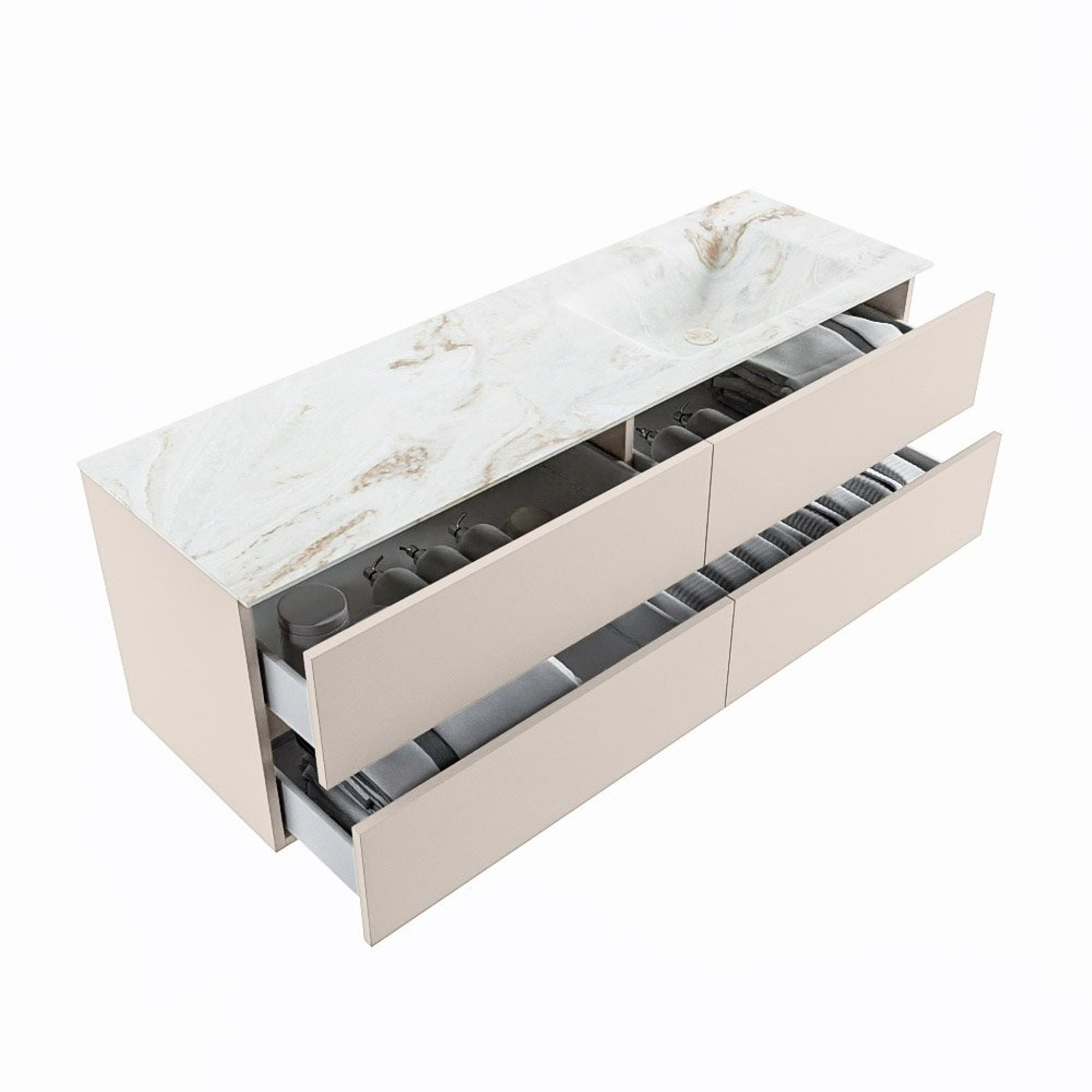 MONDIAZ VICA-DLUX Ensemble meuble de salle de bains - 150cm - meuble sous-vasque linen - 4 tiroirs - lavabo encastré cloud à droite - 1 trou de robinet - version haute 60cm - frape
