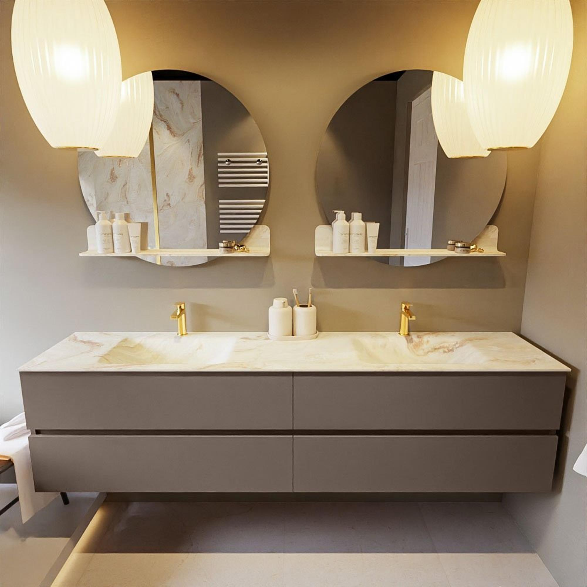 MONDIAZ VICA-DLUX Ensemble meuble de salle de bains - 200cm - meuble sous-vasque smoke - 4 tiroirs - lavabo encastré cloud double - 2 trous de robinet - version hauteur 60cm - frape