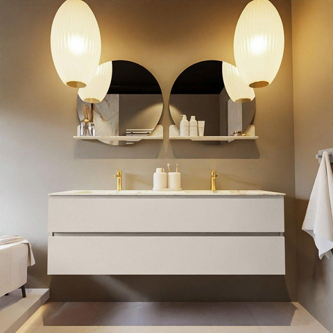MONDIAZ VICA-DLUX Ensemble meuble de salle de bains - 150cm - meuble bas linen - 2 tiroirs - lavabo encastré cloud double - 2 trous de robinet - version haute 60cm - frape