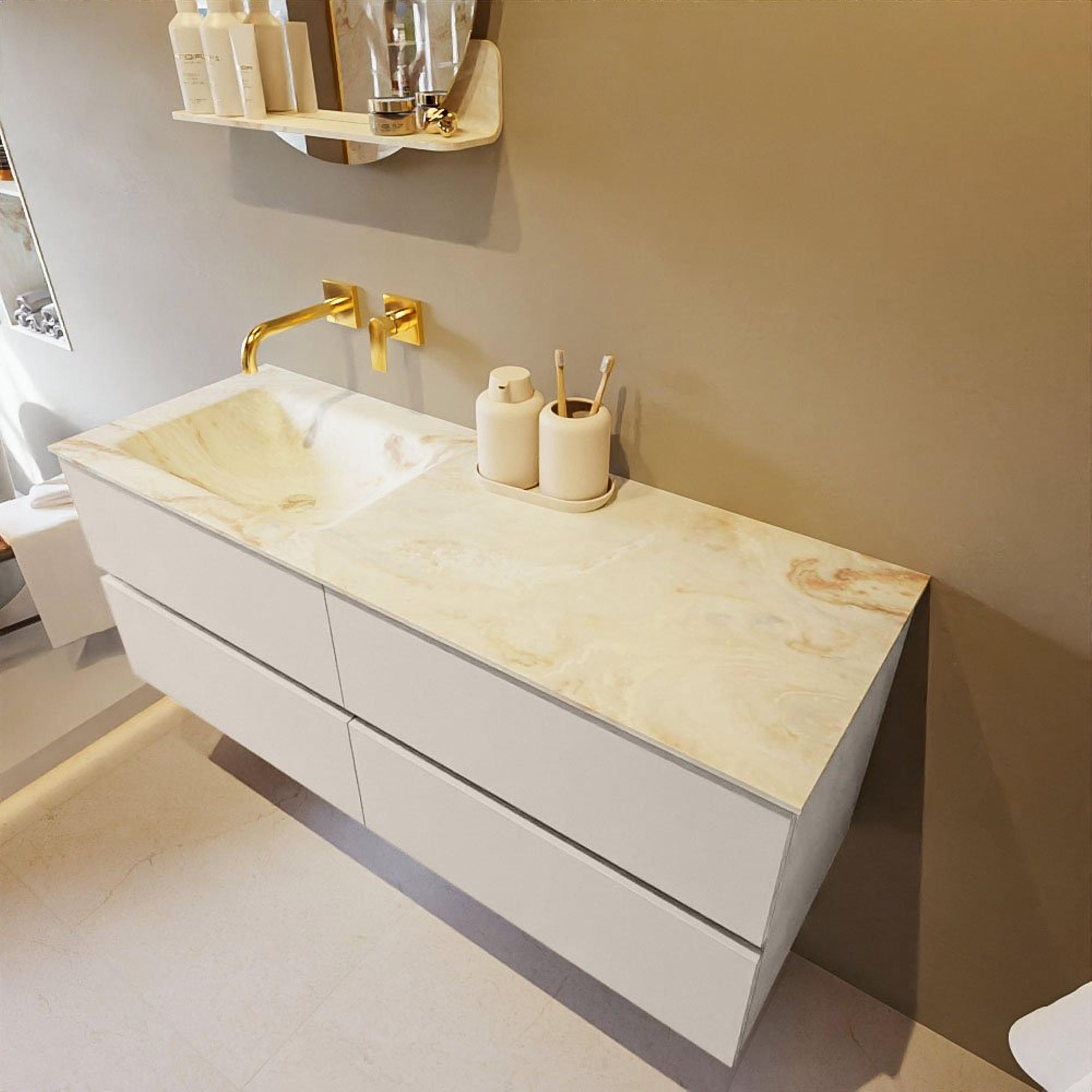 MONDIAZ VICA-DLUX Ensemble meuble de salle de bains - 130cm - meuble bas linen - 4 tiroirs - lavabo encastré cloud à gauche - sans trous de robinet - version hauteur 60cm - frape