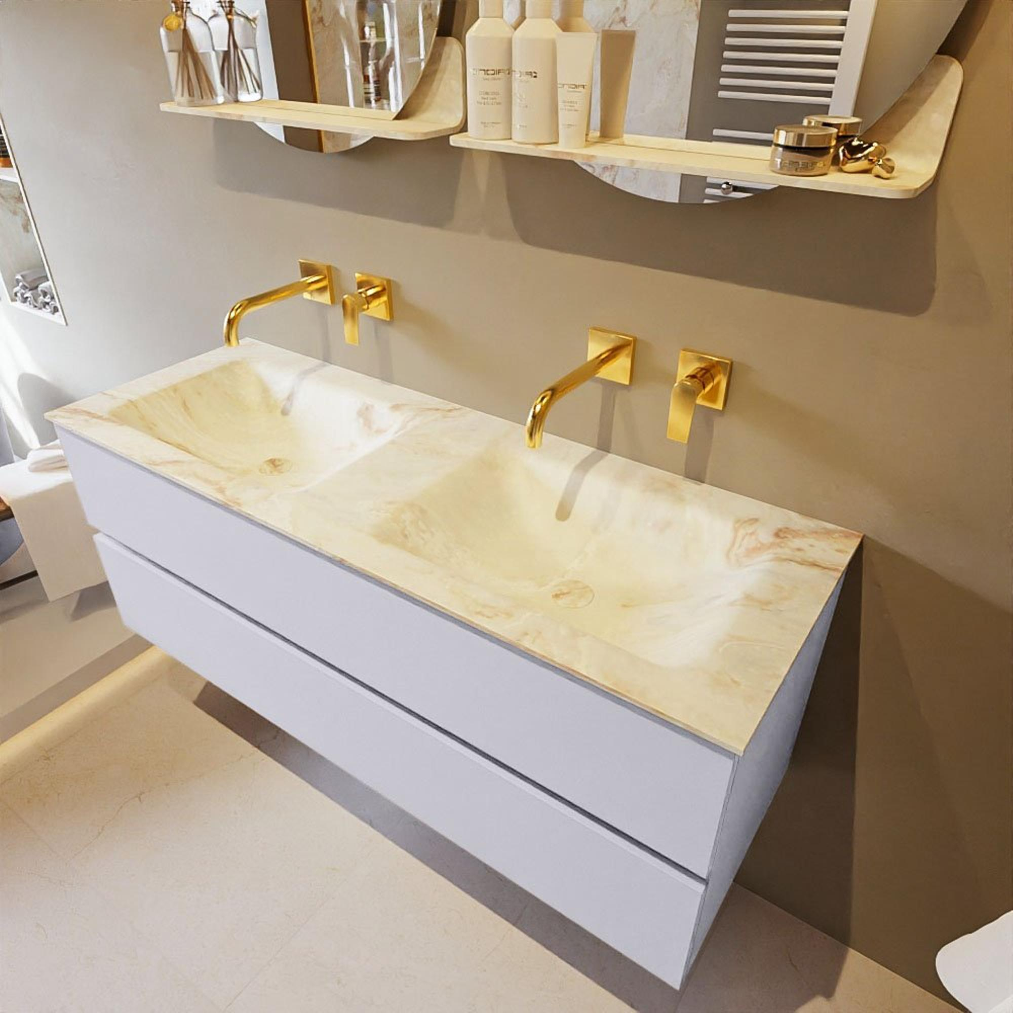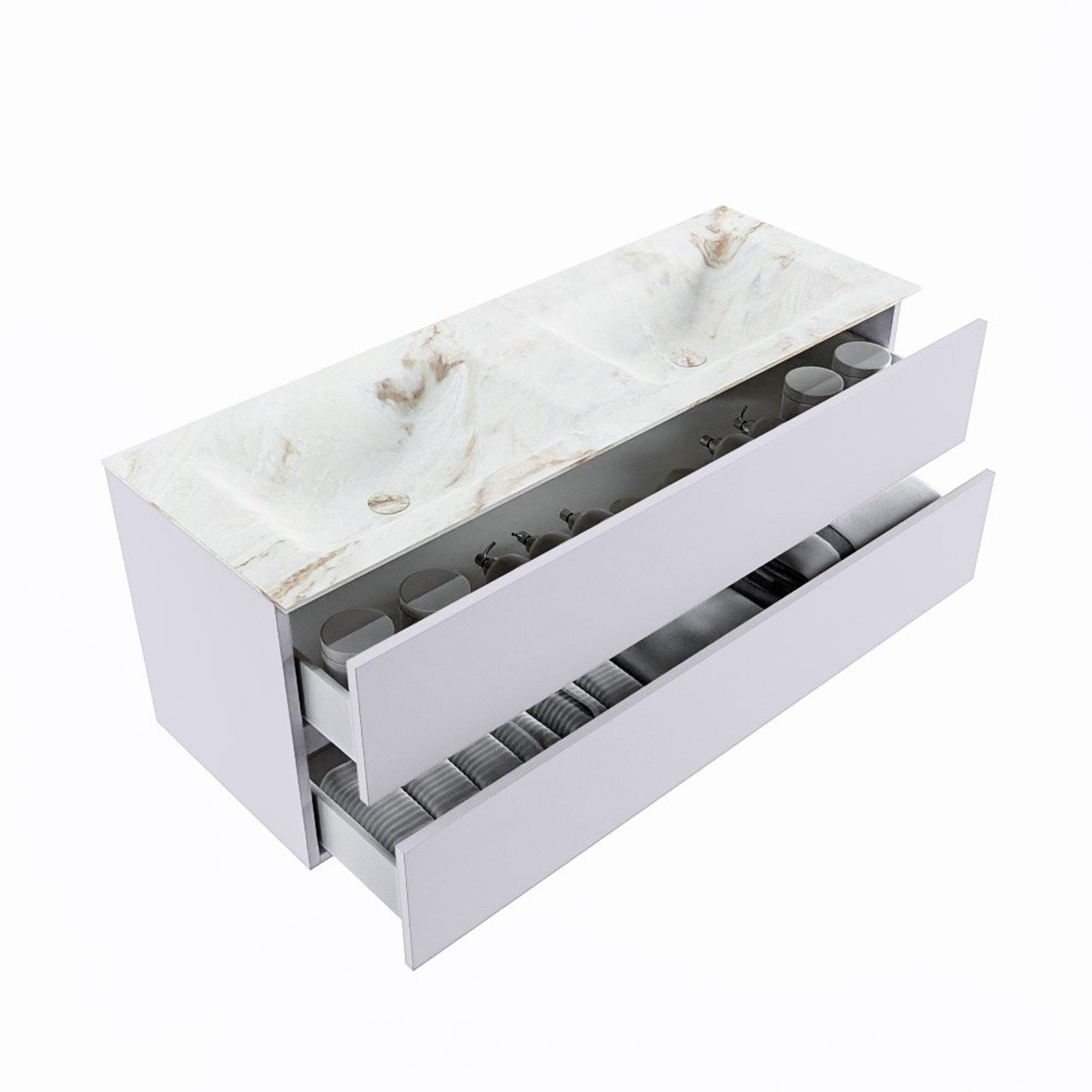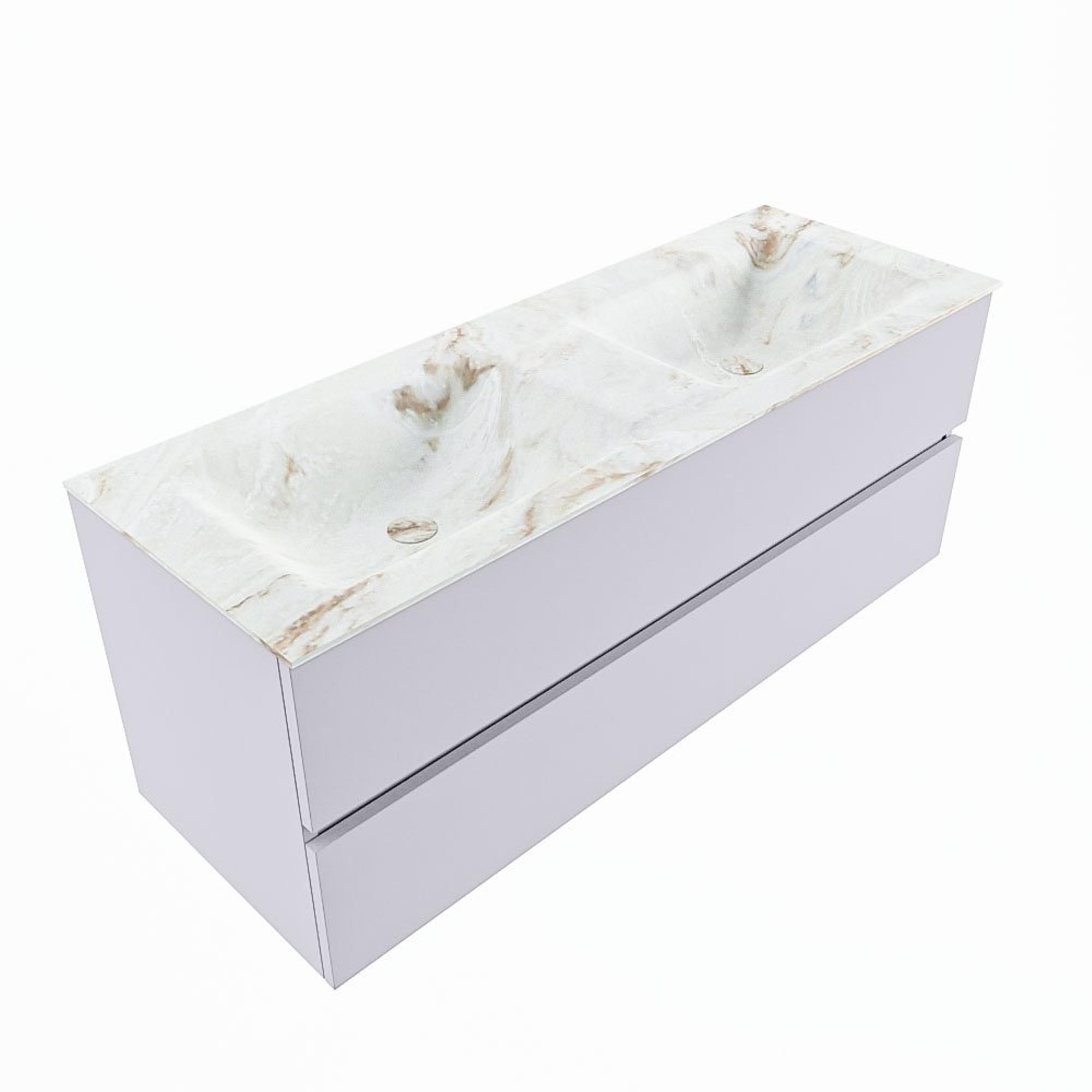 MONDIAZ VICA-DLUX Ensemble meuble de salle de bains - 130cm - sous-ensemble cale - 2 tiroirs - lavabo encastré cloud double - sans trous de robinet - version hauteur 60cm - frape