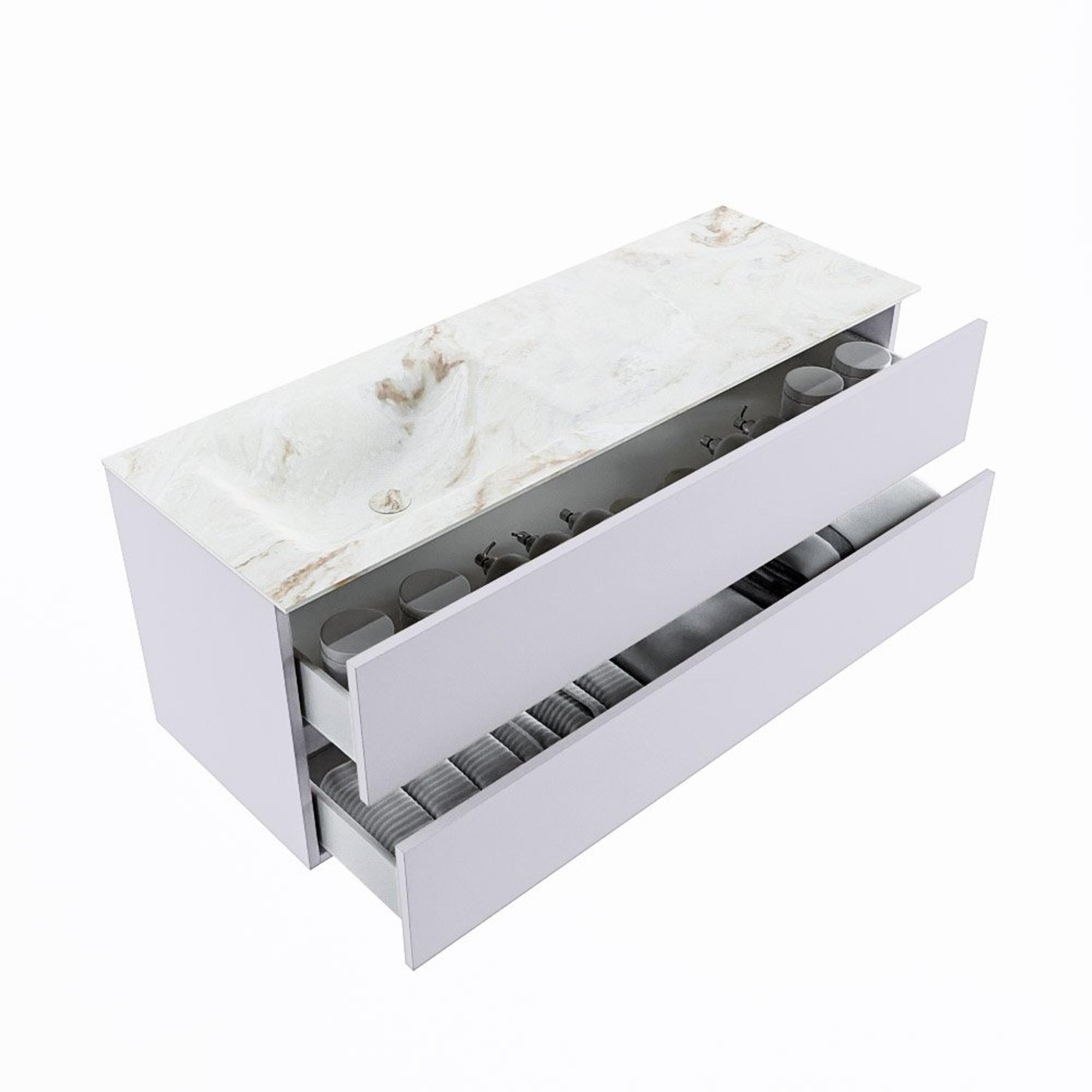MONDIAZ VICA-DLUX Ensemble meuble de salle de bains - 130cm - meuble bas Cale - 2 tiroirs - lavabo encastré Cloud à gauche - sans trous de robinet - version haute 60cm - Frappe