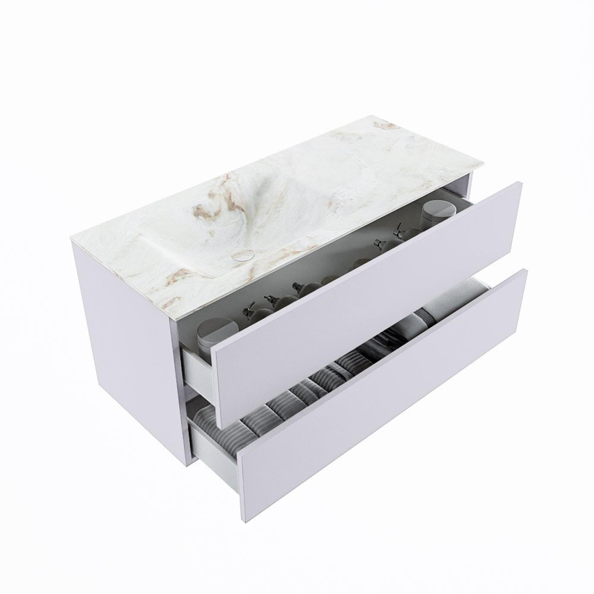 MONDIAZ VICA-DLUX Ensemble meuble de salle de bains - 110cm - meuble bas Cale - 2 tiroirs - vasque encastrée Cloud gauche - 1 trou de robinet - version haute 60cm - Frappe