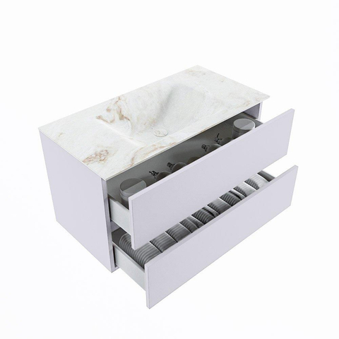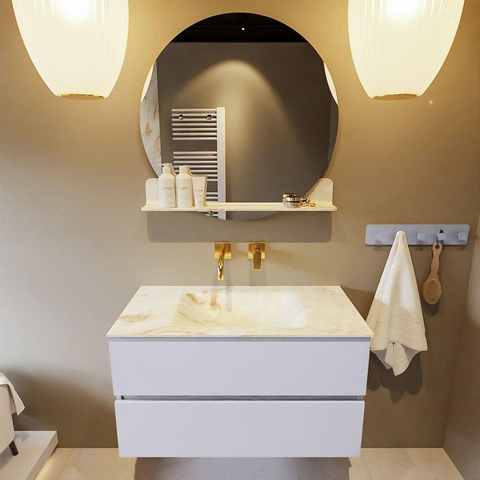 Le magnifique ensemble de meuble de salle de bains VICA DLUX est une splendide pièce maîtresse dans votre salle de bains. Le lavabo en Solid surface marbré de CORIAN a une apparence élégante et intemporelle. Grâce à la forme douce et naturelle du lavabo, combinée avec le meuble sous-vasque de salle de bains intemporel et magnifique, le VICA-DLUX s’adapte bien aux différents styles de salles de bains. Pour parfaire entièrement le style de votre salle de bains, nous proposons également les niches et supports de miroir dans la même couleur que le lavabo. Comme les niches Mondiaz et les tablettes de miroir. La série VICA DLUX se compose du meuble sous-vasque VICA à 2 ou 4 tiroirs, combiné avec un lavabo en Solid surface CORIAN avec structure marbre. Le lavabo en Solid surface CORIAN est disponible en 5 aspects marbre. Avec cet ensemble de meuble de salle de bains, vous obtenez ce beau look marbre tout en bénéficiant également de la facilité d’entretien et de l’hygiène du Solid surface. Attention : pour la variante XL (60cm), vous voyez les images/vidéos de la hauteur standard (50cm)