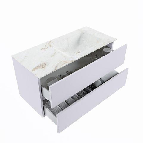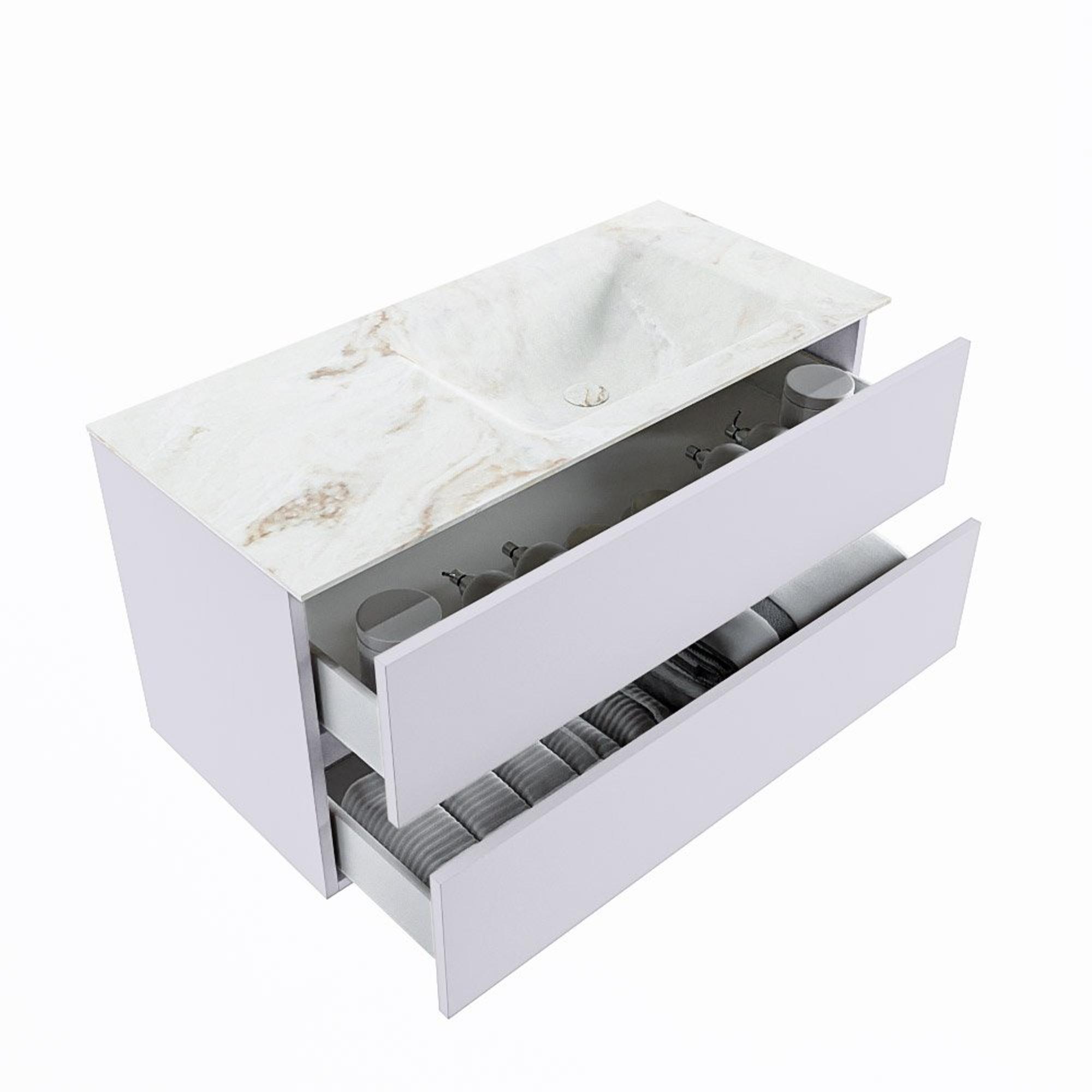 MONDIAZ VICA-DLUX Ensemble meuble de salle de bains - 100cm - meuble-bas cale - 2 tiroirs - lavabo encastré cloud à droite - sans trous de robinet - version haute 60cm - frape
