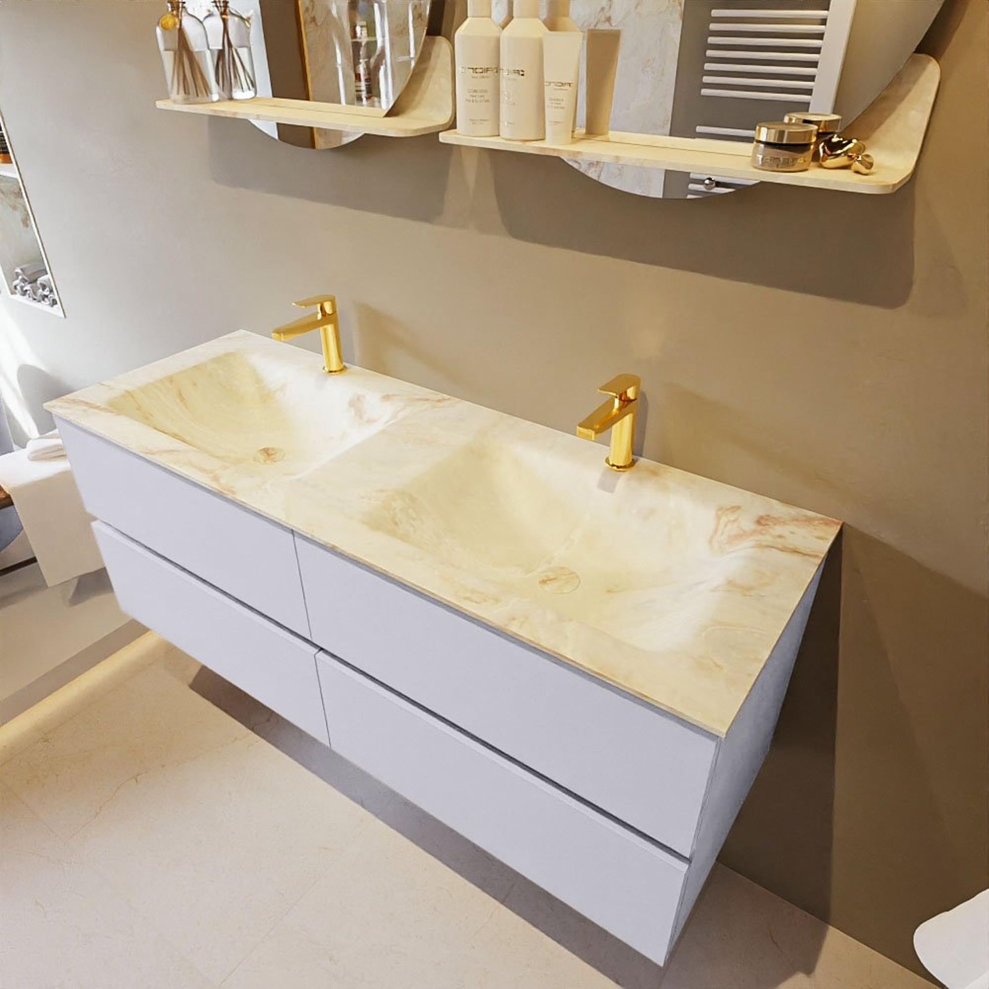 MONDIAZ VICA-DLUX Ensemble meuble de salle de bains - 130cm - meuble bas Cale - 4 tiroirs - lavabo encastré Cloud double - 2 trous de robinet - version haute 60cm - Frappe
