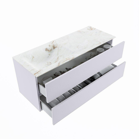 MONDIAZ VICA-DLUX Ensemble meuble de salle de bains - 120cm - sous-meuble Cale - 2 tiroirs - vasque encastrée Cloud gauche - 1 trou de robinet - version haute 60cm - Frappe