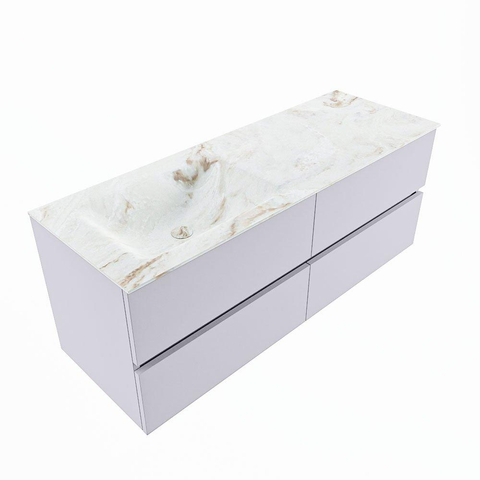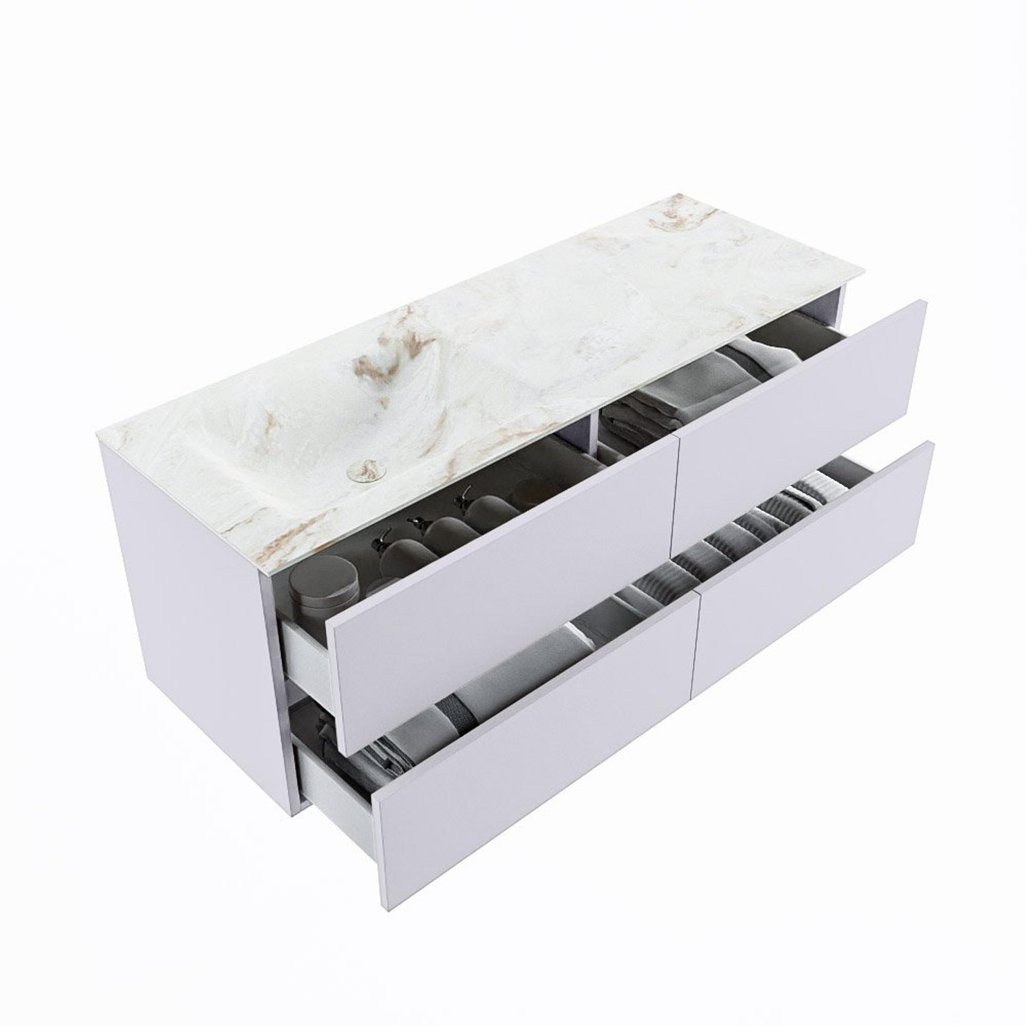 MONDIAZ VICA-DLUX Ensemble meuble de salle de bains - 130cm - meuble bas Cale - 4 tiroirs - vasque encastrée Cloud gauche - sans trous de robinet - version hauteur 60cm - Frappe