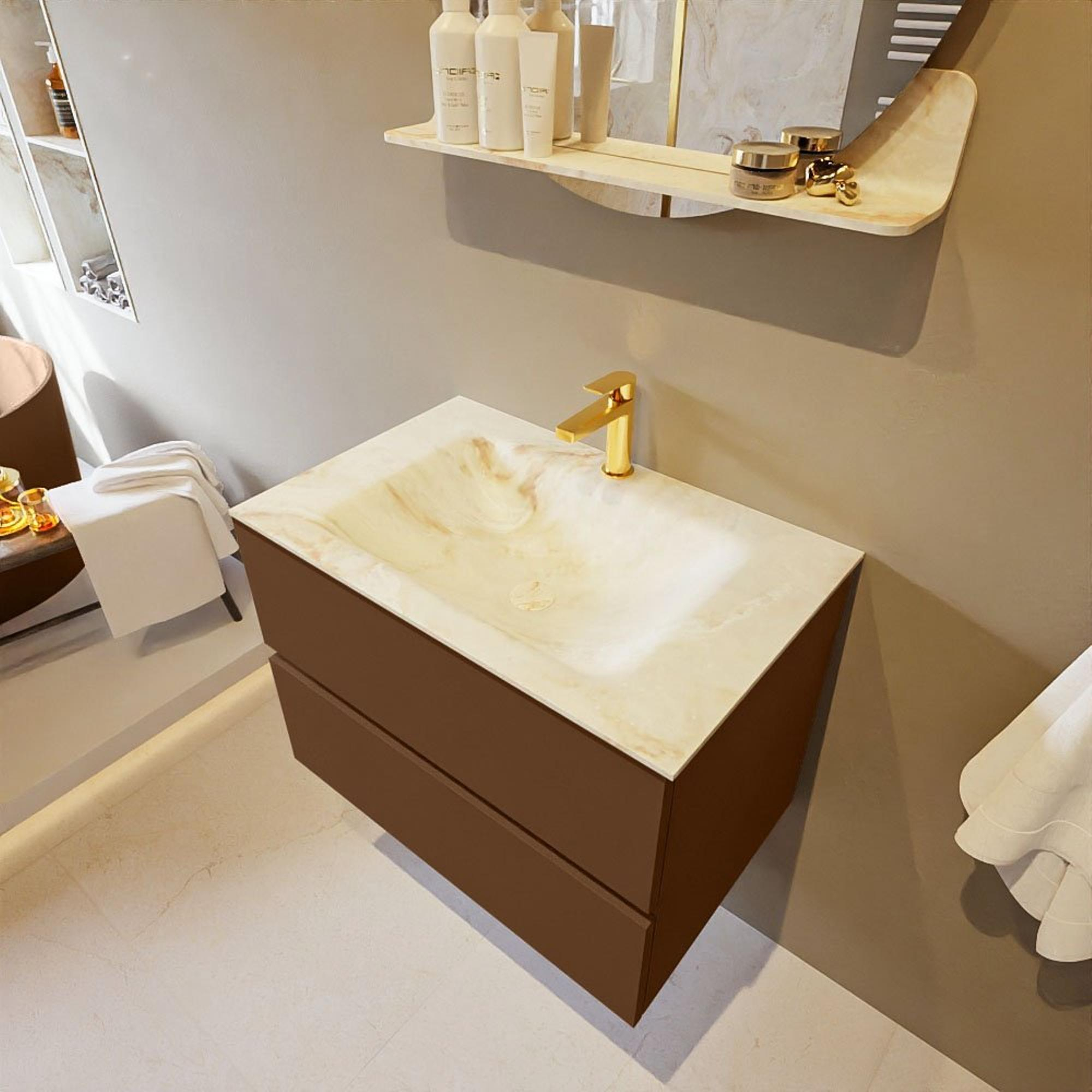 MONDIAZ VICA-DLUX Ensemble meuble de salle de bains - 70cm - meuble bas Rust- 2 tiroirs - lavabo encastré Cloud central - 1 trou de robinet - version haute 60cm - Frappe