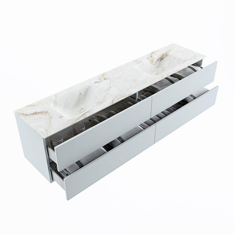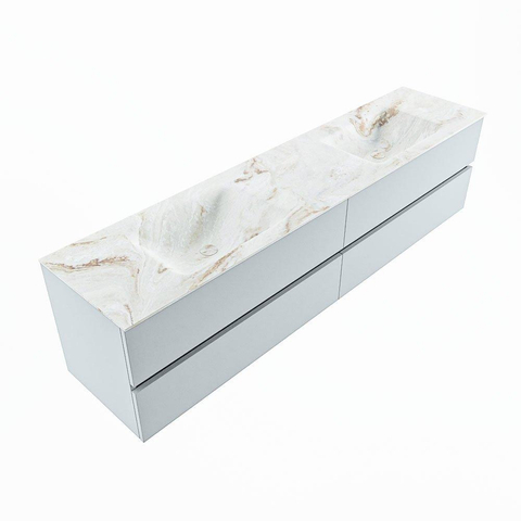 MONDIAZ VICA-DLUX Ensemble meuble de salle de bains - 200cm - meuble bas Clay - 4 tiroirs - lavabo encastré Cloud double - sans trous de robinet - version haute 60cm - Frappe