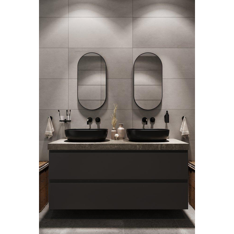 Ce miroir mural ovale élégant est idéal comme élément accrocheur et stylé dans une salle de bains moderne, mais il trouve tout aussi bien sa place dans votre hall, chambre ou toilettes. Grâce à son design fin et minimaliste et à son encadrement noir mat, vous le combinez sans effort avec d'autres accessoires et robinets noirs. La dimension de 80x40 cm est parfaite au-dessus d'un lavabo, à côté d'un meuble de salle de bains ou comme miroir vertical dans un espace plus étroit. Comme vous pouvez le monter aussi bien horizontalement que verticalement, vous avez toute la liberté pour l'adapter exactement à votre intérieur et à l'espace mural disponible. Vous optez ainsi pour un miroir pratique qui n'est pas seulement fonctionnel au quotidien, mais qui offre également immédiatement une atmosphère contemporaine et chaleureuse.