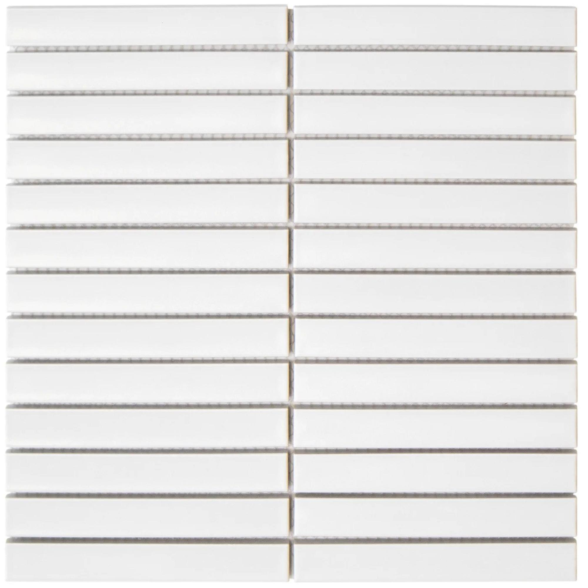Cette mosaïque raffinée est idéale si vous recherchez une base élégante mais sobre pour votre salle de bains, vos toilettes, votre cuisine ou même un espace bien-être. Les petits carreaux étroits et rectangulaires en blanc mat donnent aux murs un aspect moderne, presque architectural, tandis que la brillance subtile de la porcelaine émaillée fait en sorte que l’ensemble n’ait jamais l’air froid ou ennuyeux. Grâce au format compact des trames, vous pouvez habiller aussi bien de grands murs que de petits accents : d’une paroi de douche épurée à une niche ludique ou un élégant mur de miroir derrière le meuble de salle de bains. La couleur intemporelle et le relief raffiné rendent ce type de mosaïque particulièrement adapté aux salles de bains minimalistes, scandinaves et d’inspiration hôtel chic, mais aussi comme contrepoint calme à un sol carrelé plus chargé. Si vous recherchez un carreau mural durable et facile à entretenir qui gardera votre intérieur élégant pendant de longues années, c’est un choix très judicieux.
