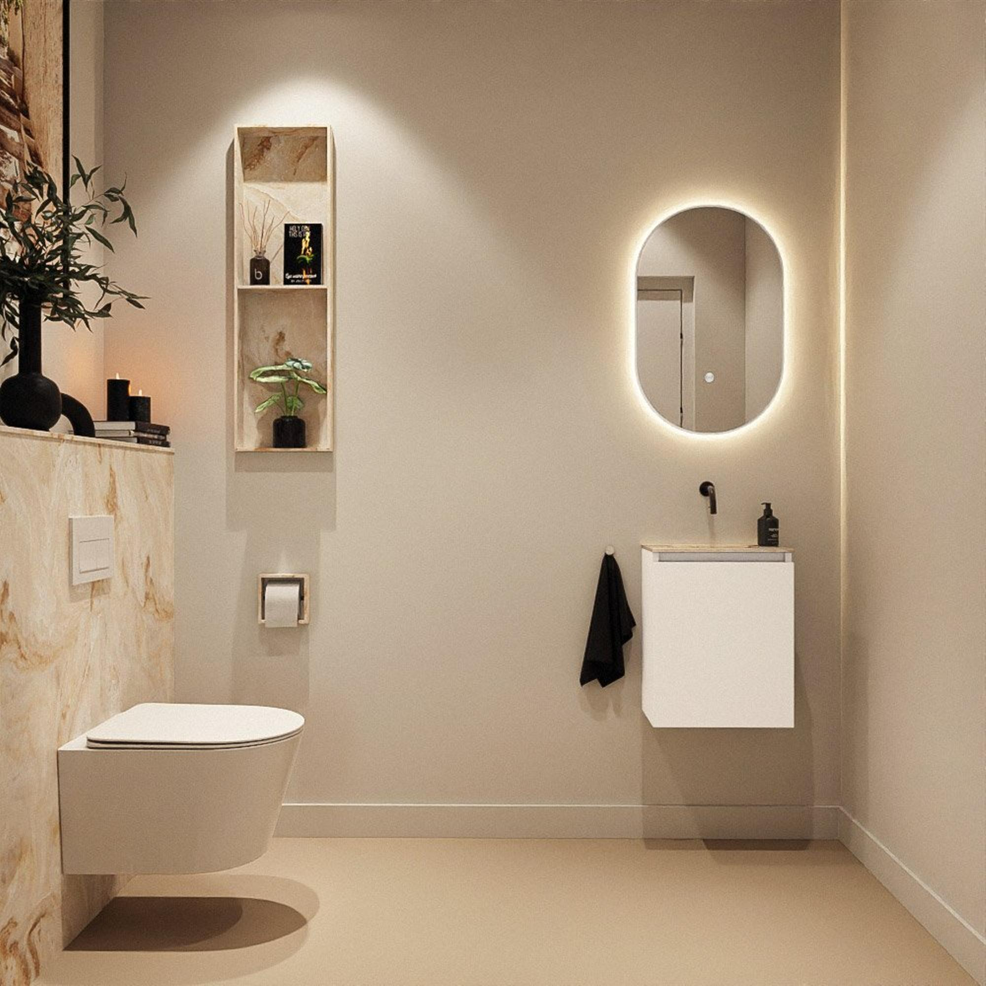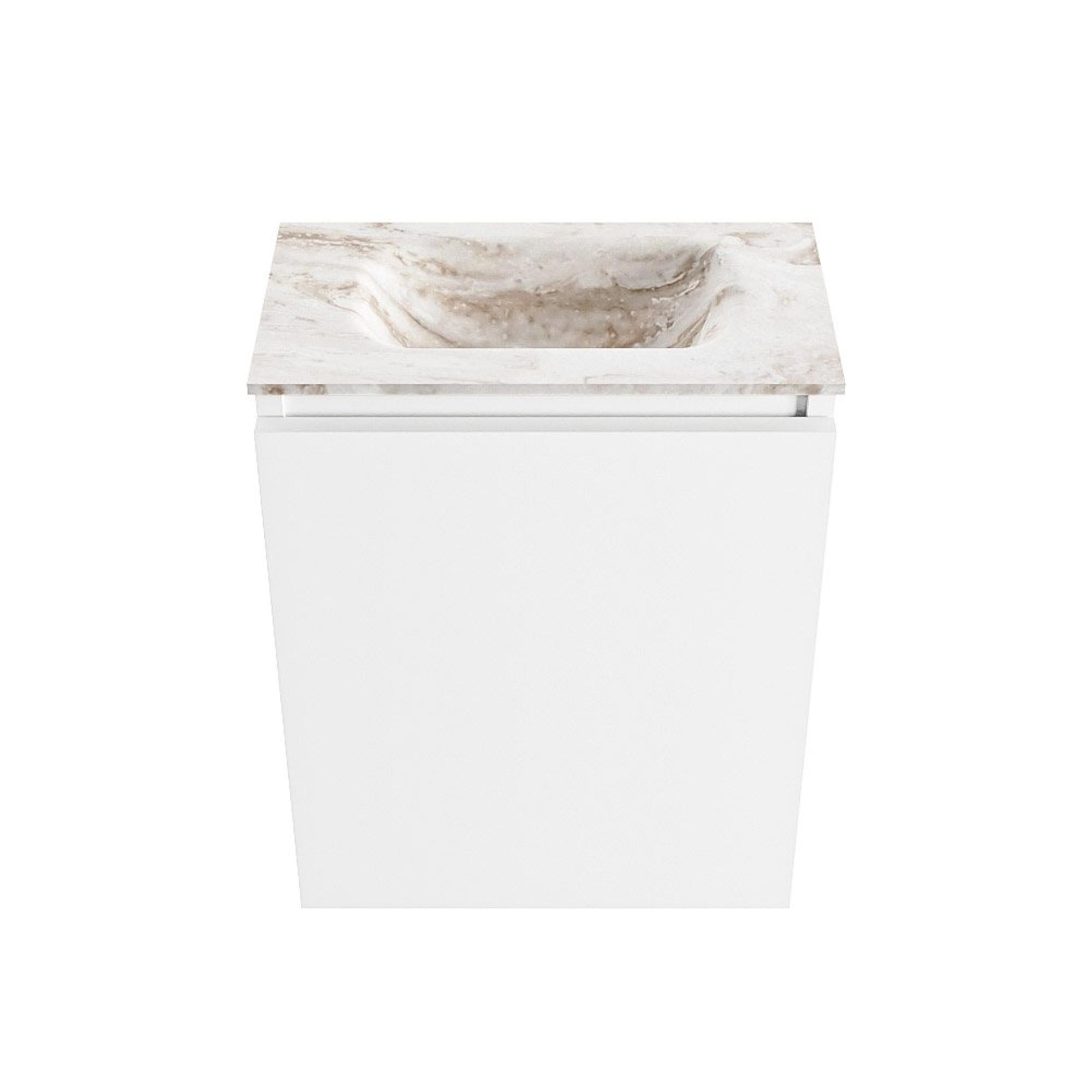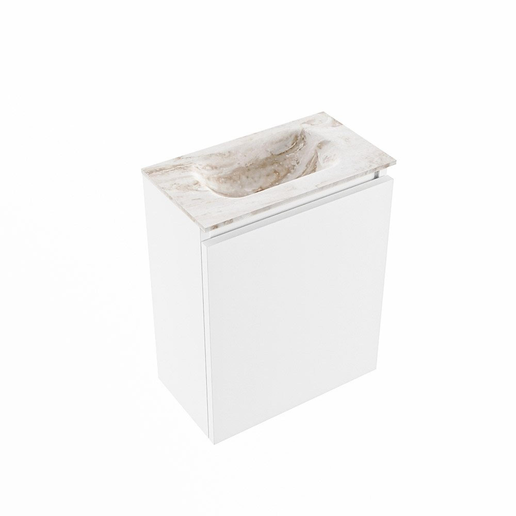 MONDIAZ TURE-DLUX Meuble de toilettes 40 cm Talc. EDEN lavabo Frappe position milieu. Sans trou de robinet.