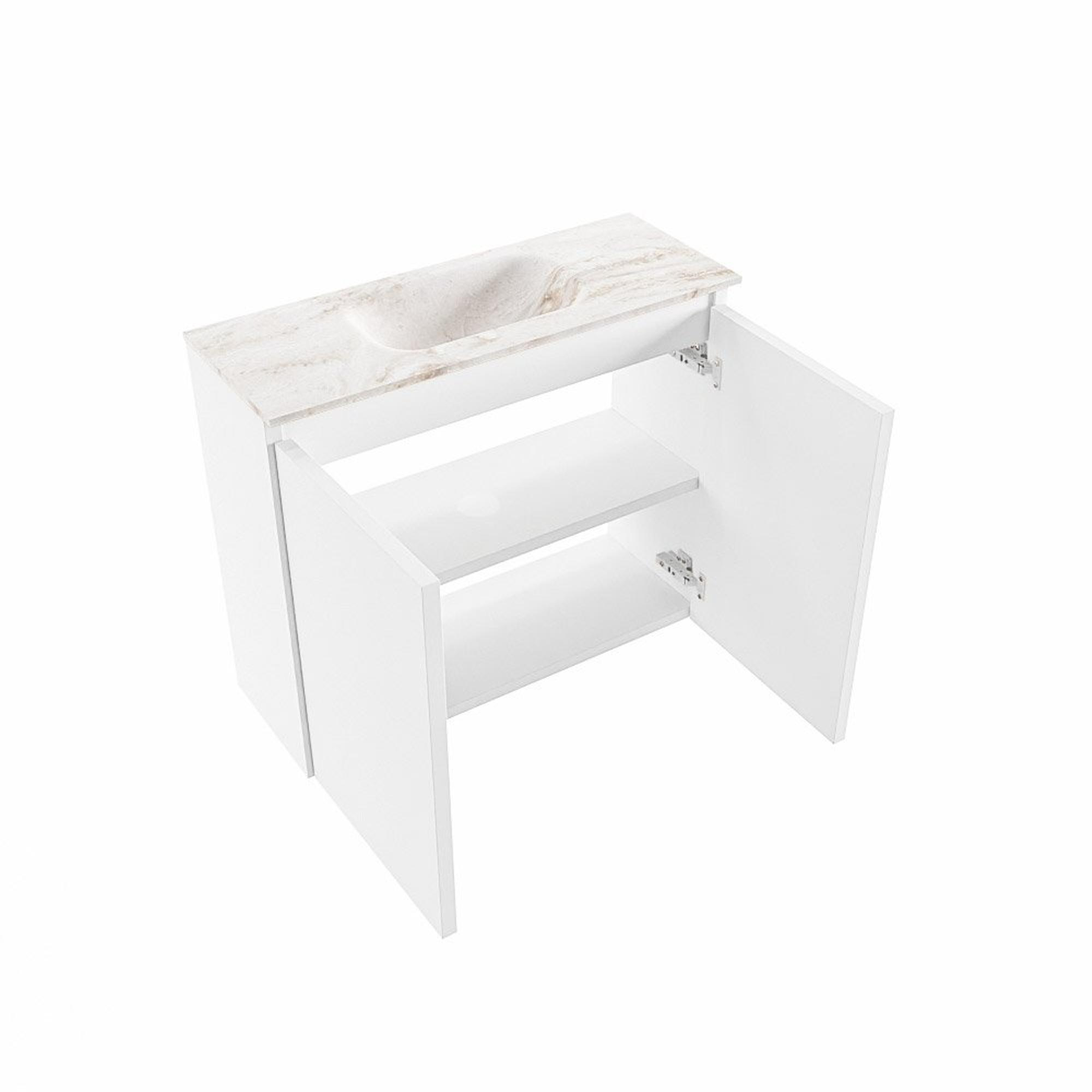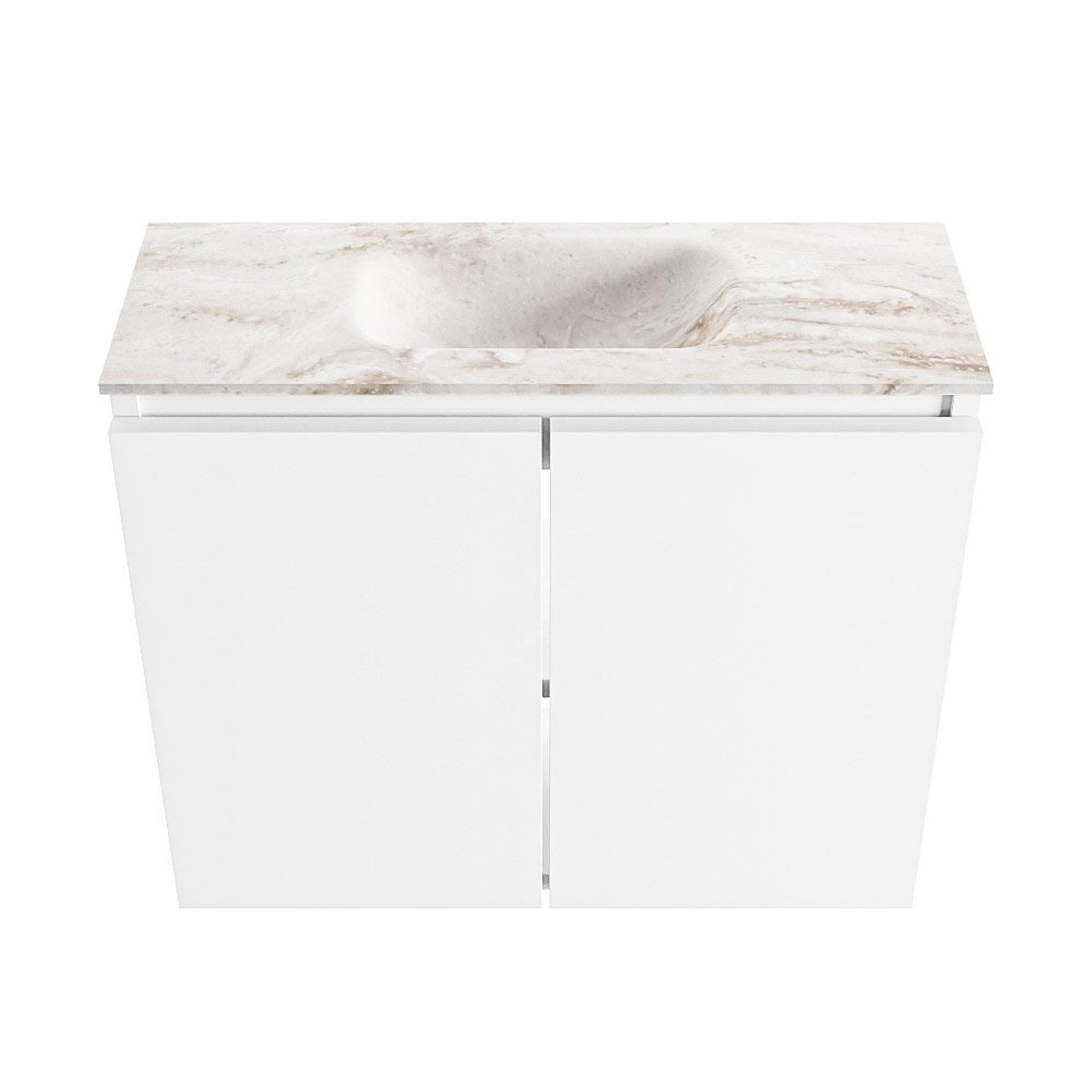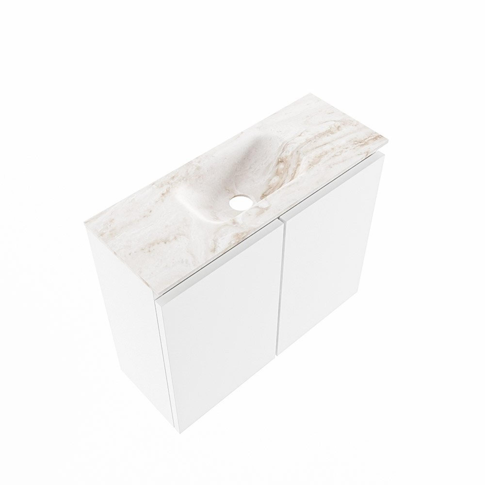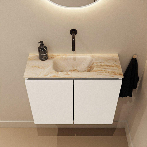 MONDIAZ TURE-DLUX Meuble de toilettes 60 cm Talc. EDEN vasque Frappe position milieu. Sans trou de robinet.