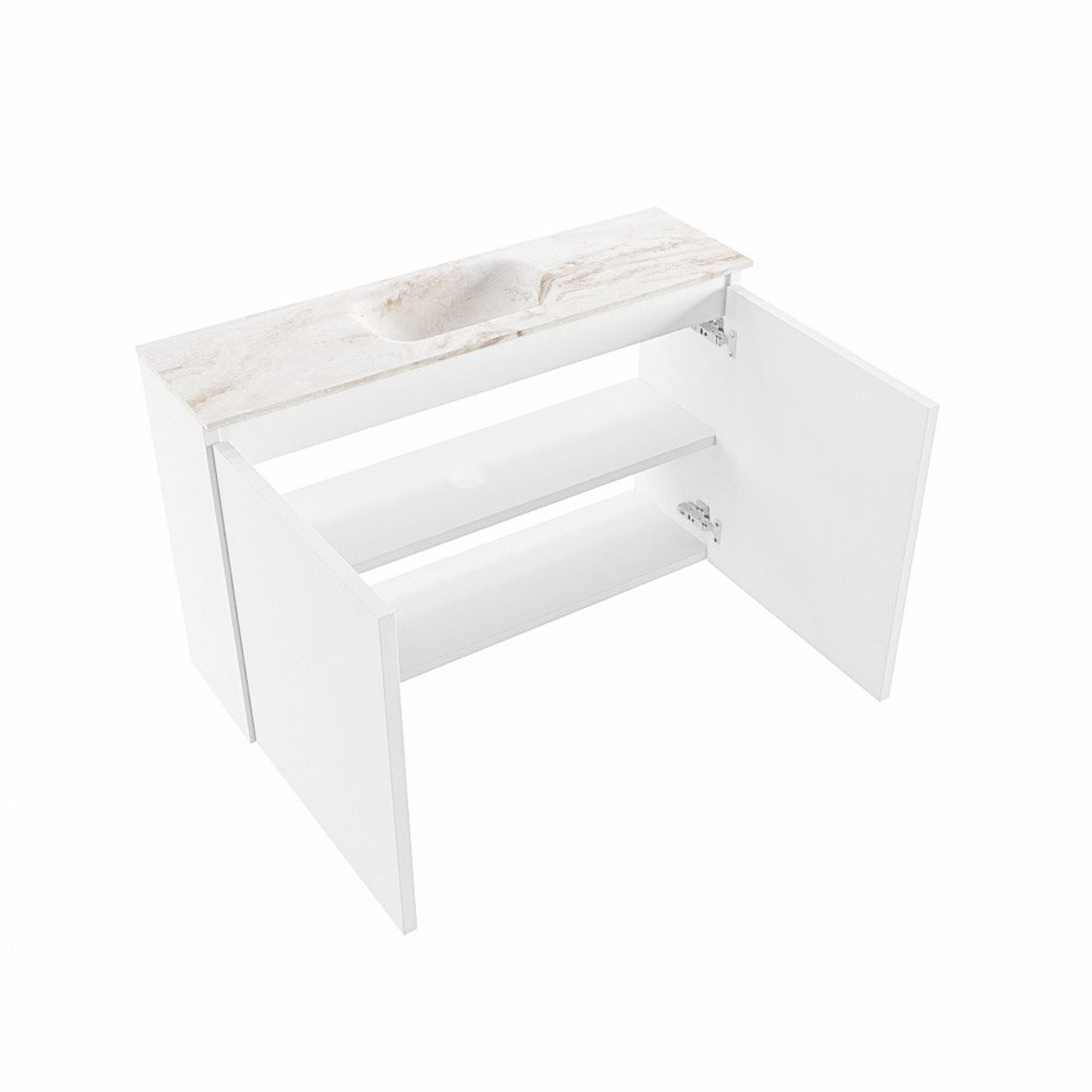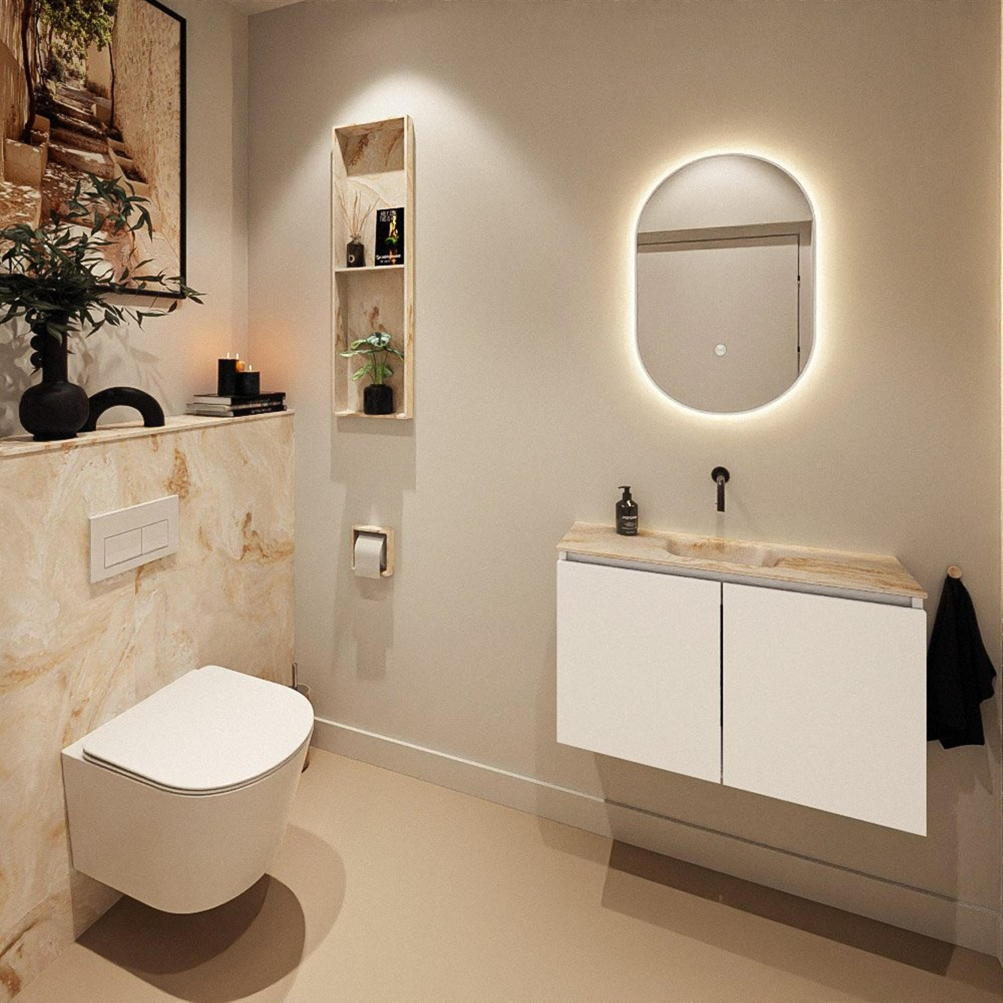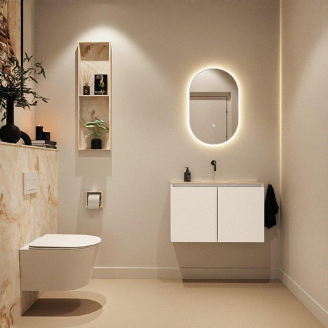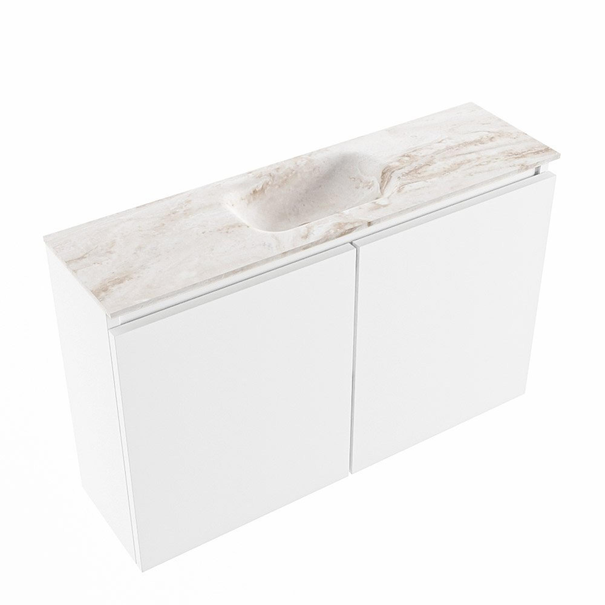 MONDIAZ TURE-DLUX Meuble WC 80cm Talc. EDEN lavabo Frappe position milieu. Sans trou de robinet.