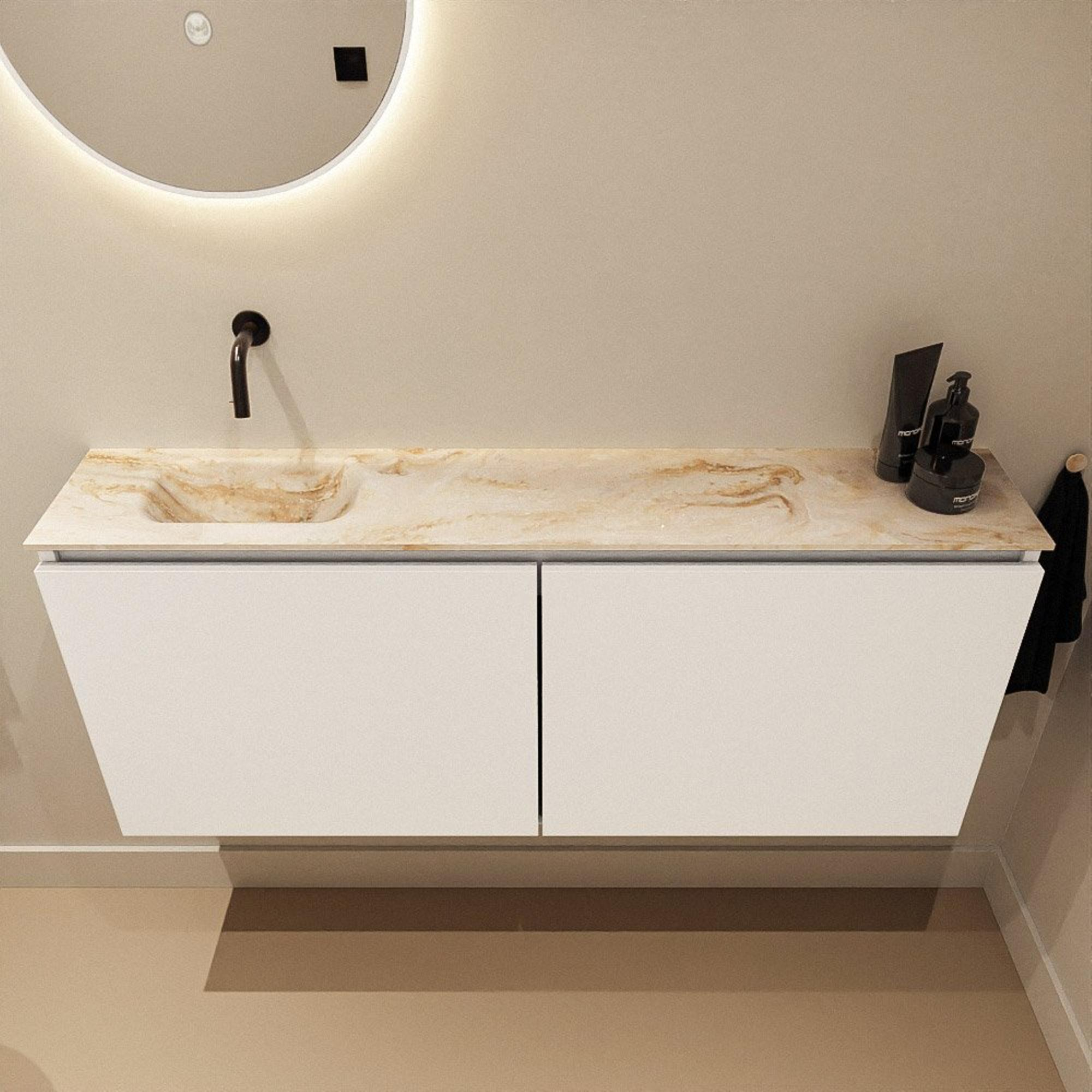 MONDIAZ TURE-DLUX Meuble WC 120 cm Talc. EDEN lavabo Frappe position gauche. Sans trou de robinet.