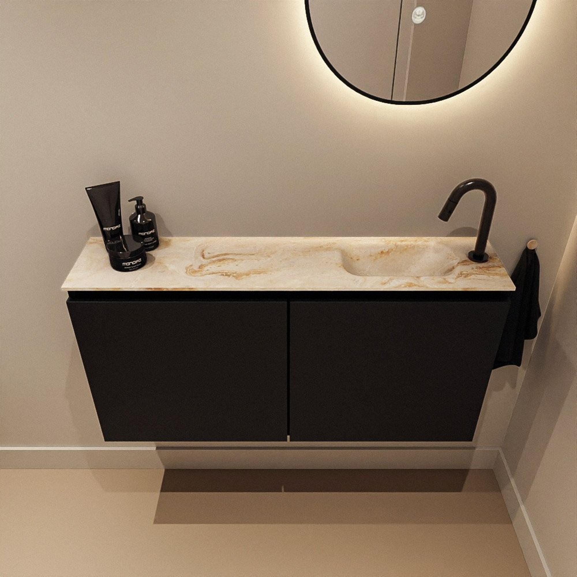 MONDIAZ TURE-DLUX Meuble WC 100 cm Urban. EDEN lavabo Frappe position à droite. Avec 1 trou de robinet.