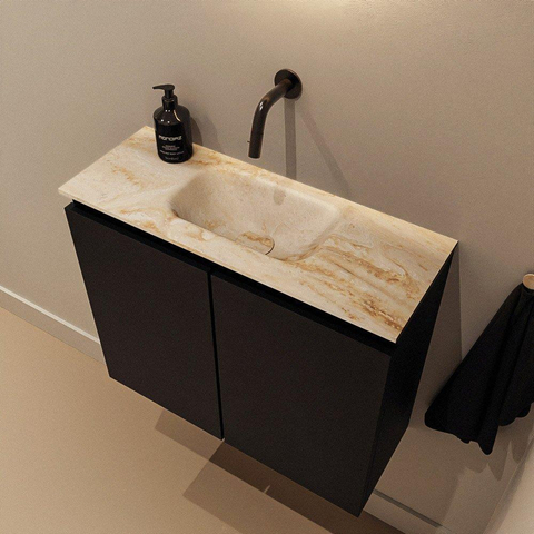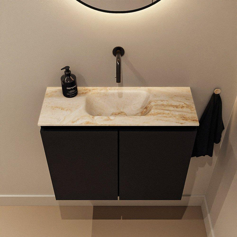 MONDIAZ TURE-DLUX meuble de WC 60 cm Urban. EDEN lavabo Frappe position milieu. Sans trou de robinet.