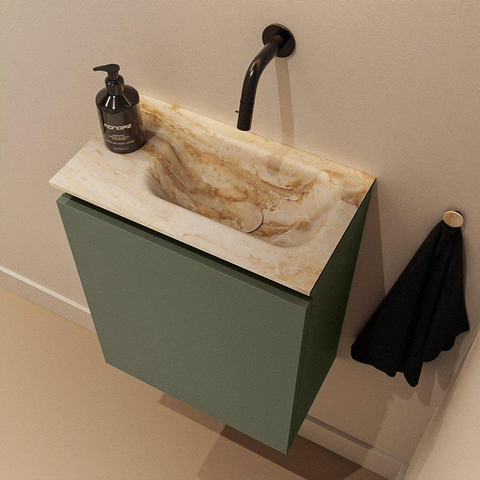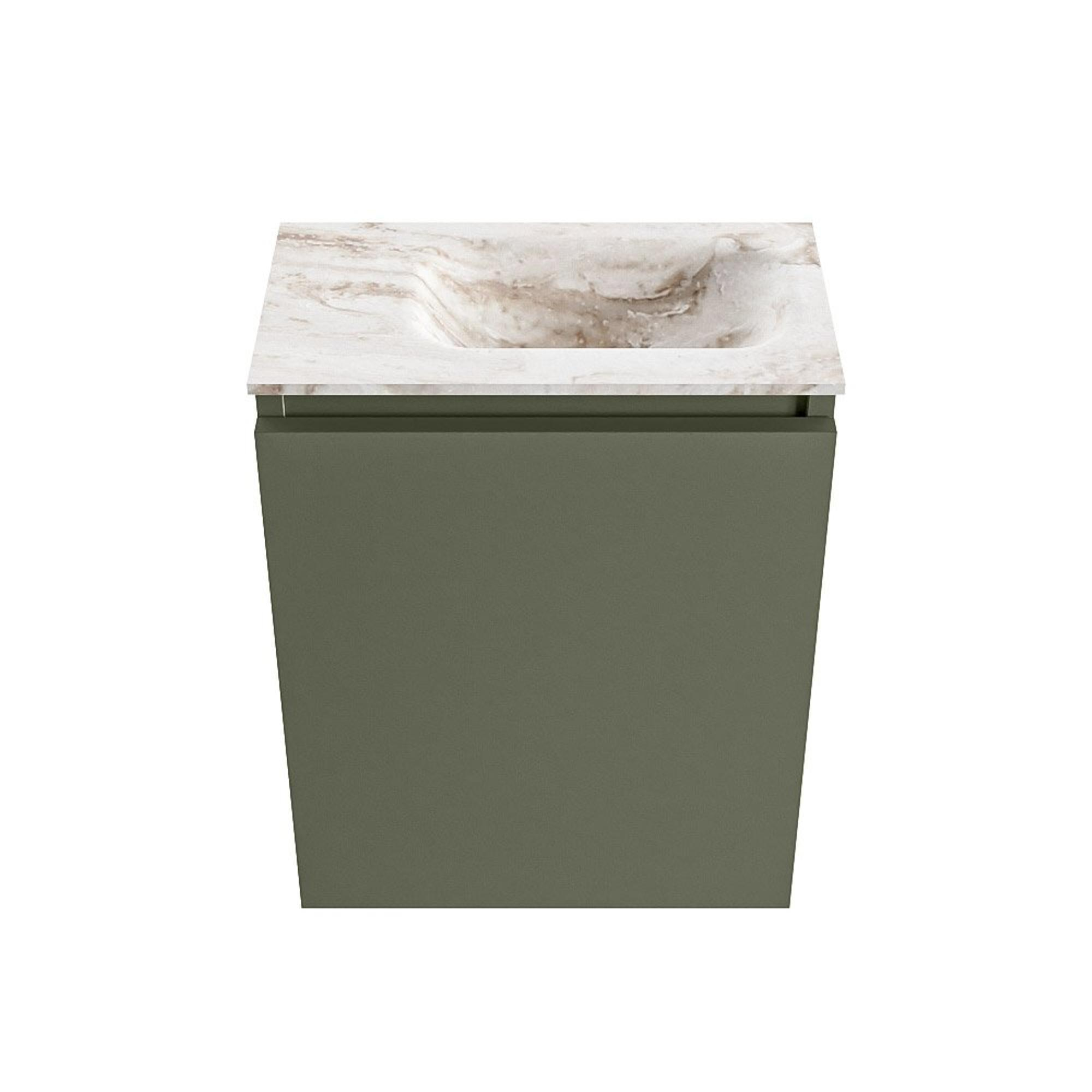 MONDIAZ TURE-DLUX Meuble de toilette 40 cm Army. Lavabo EDEN Frappe position droite. Sans trou de robinet.