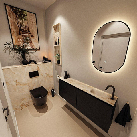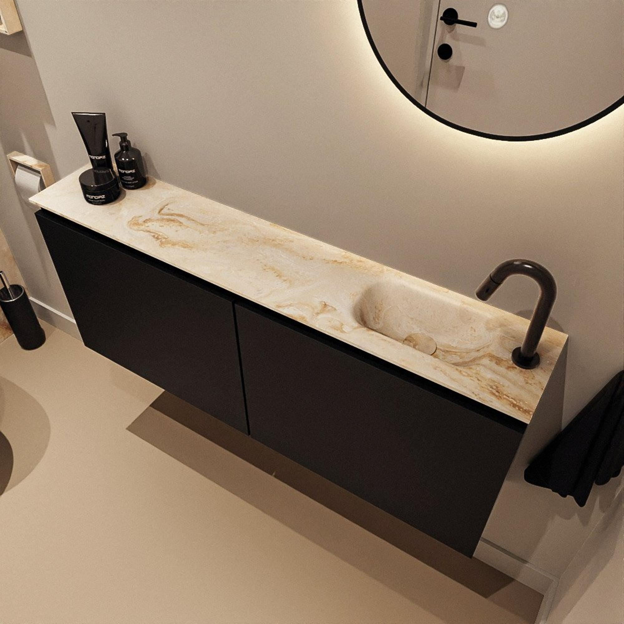 MONDIAZ TURE-DLUX Meuble WC 120 cm Urban. EDEN lavabo Frappe position à droite. Avec 1 trou de robinet.