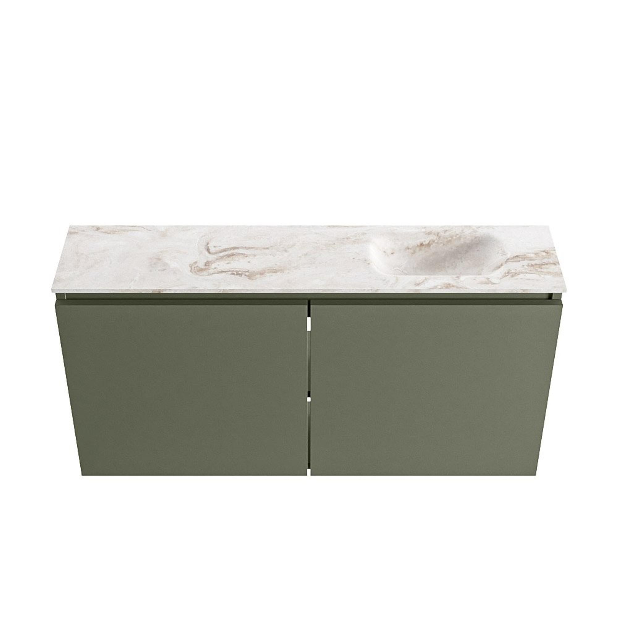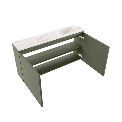 MONDIAZ TURE-DLUX Meuble de toilette 100cm Army. EDEN vasque Frappe position droite. Avec 1 trou de robinet.