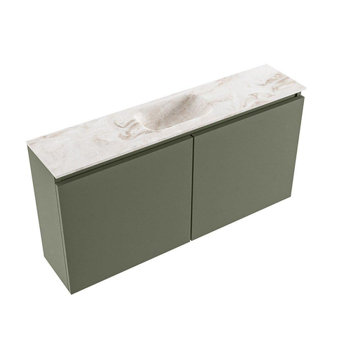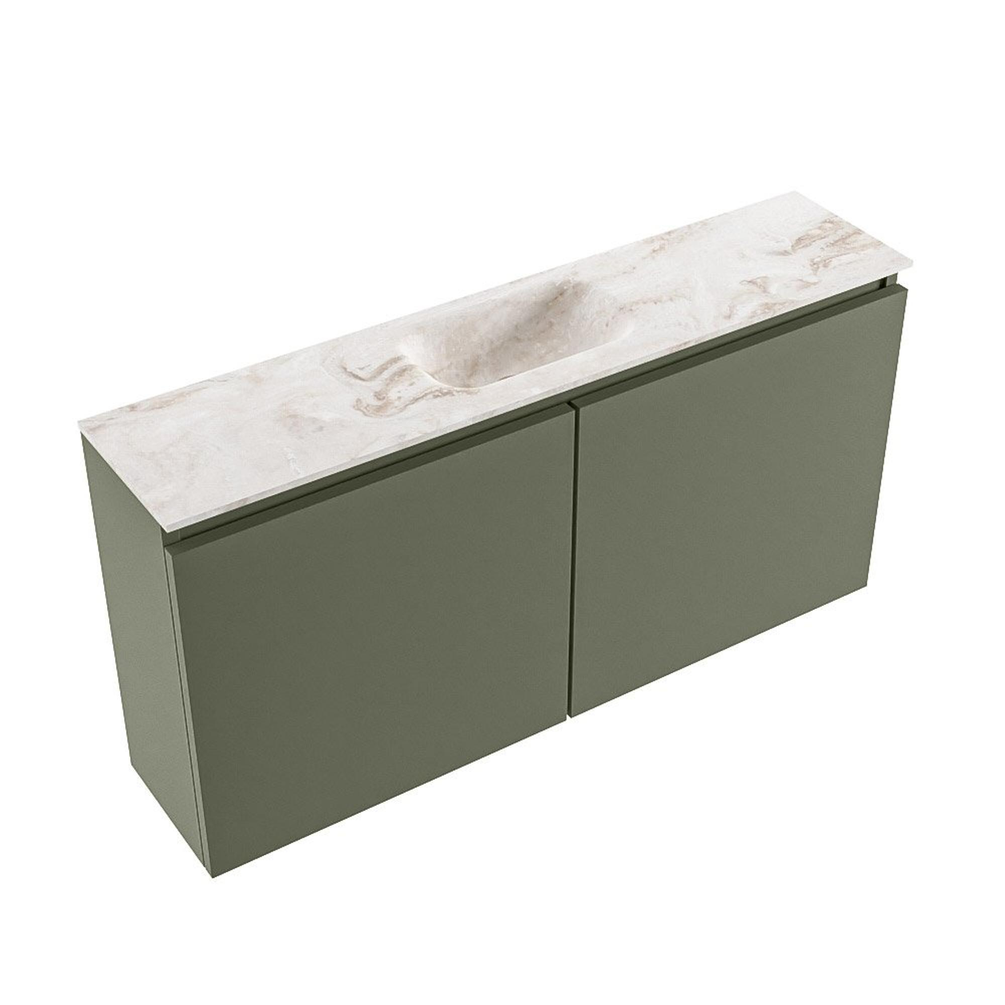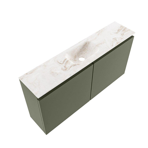 MONDIAZ TURE-DLUX meuble WC 100 cm Army. Lavabo EDEN Frappe position milieu. Sans trou de robinet.