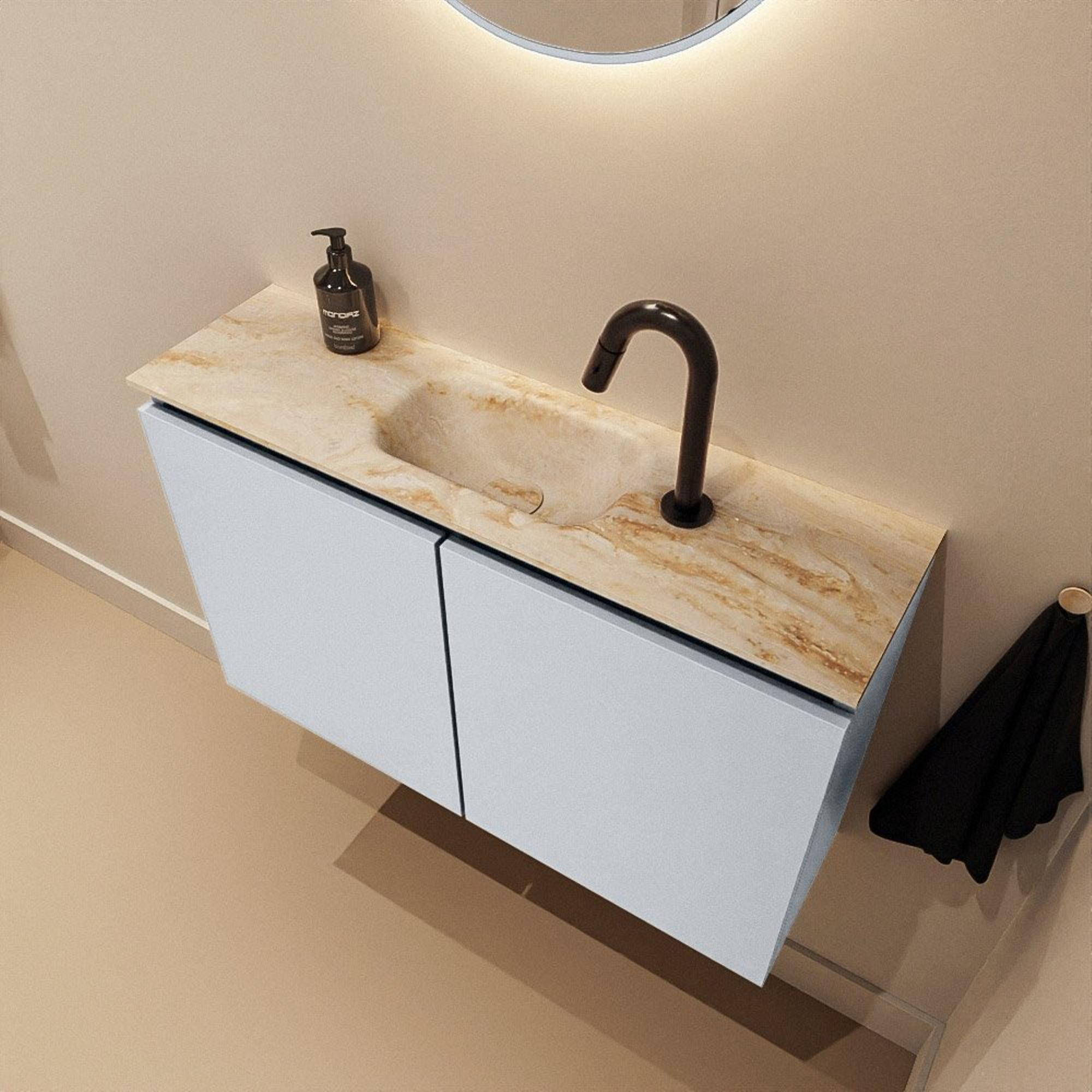 - Conçu comme meuble à poser, adapté aux intérieurs modernes, minimalistes et de style hôtel chic.