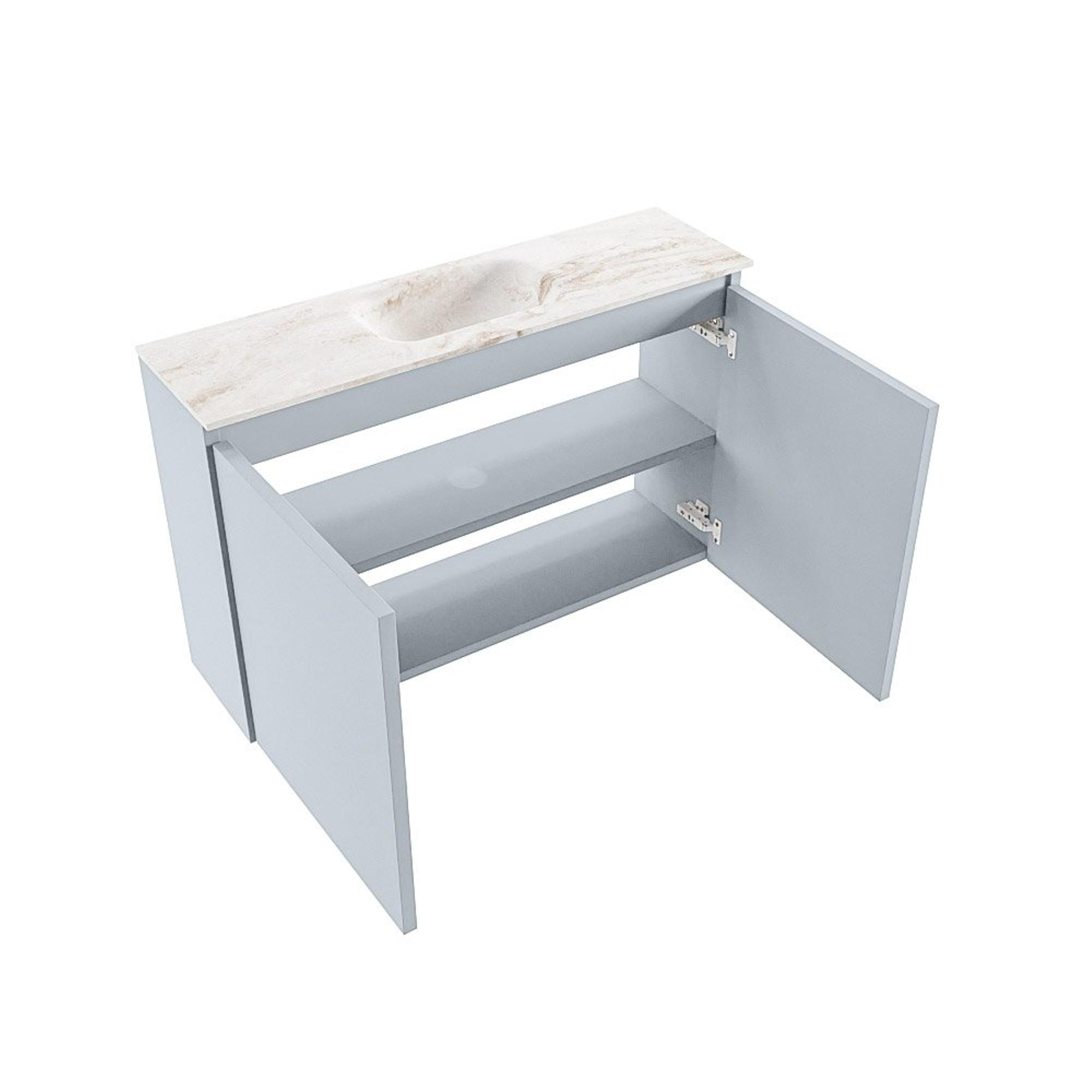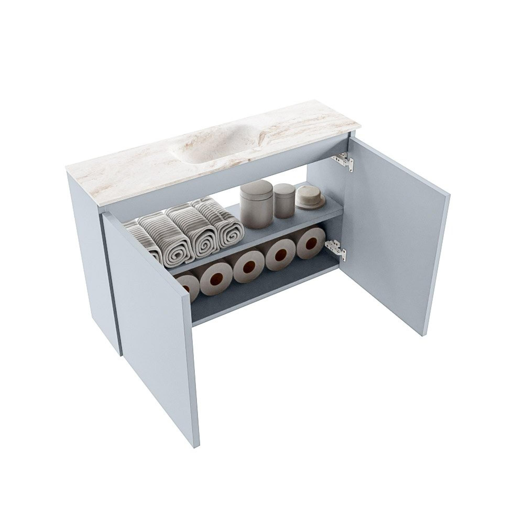 MONDIAZ TURE-DLUX meuble de toilettes 80 cm Clay. EDEN vasque Frappe position milieu. Avec 1 trou de robinet.